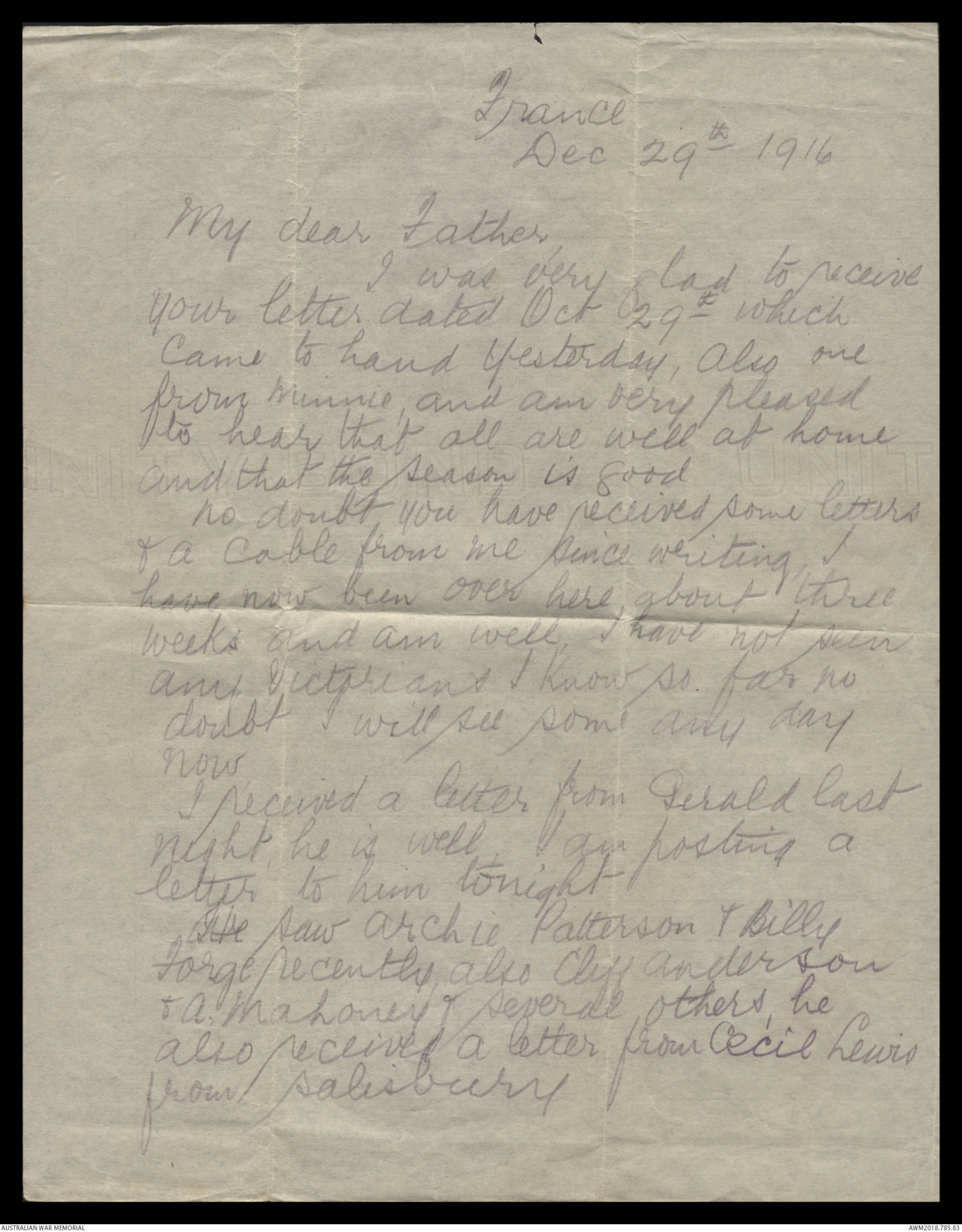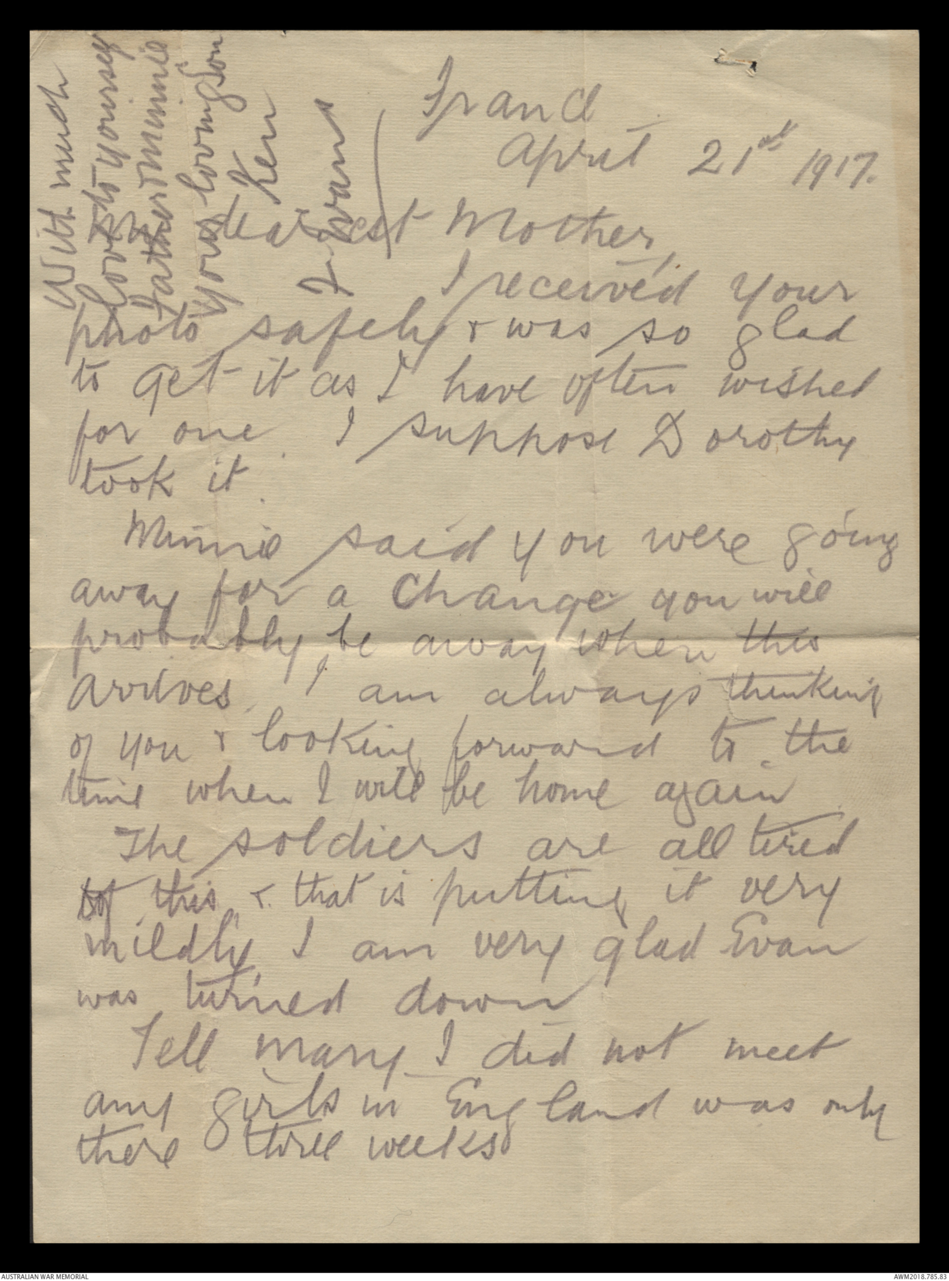 Letters from Francis (Ken) Evans to his family, 1915-1917 - Part 2