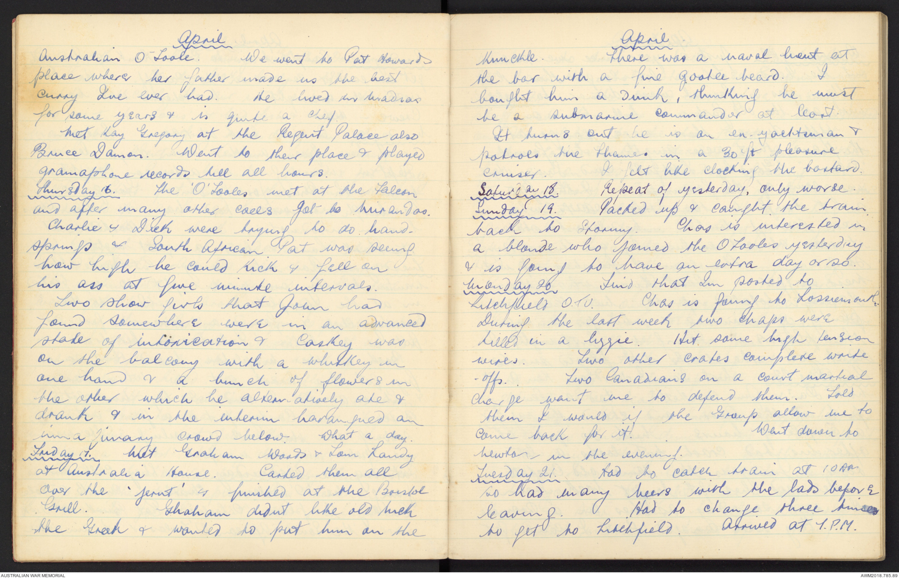 Sunday 19. Packed up and caught the train