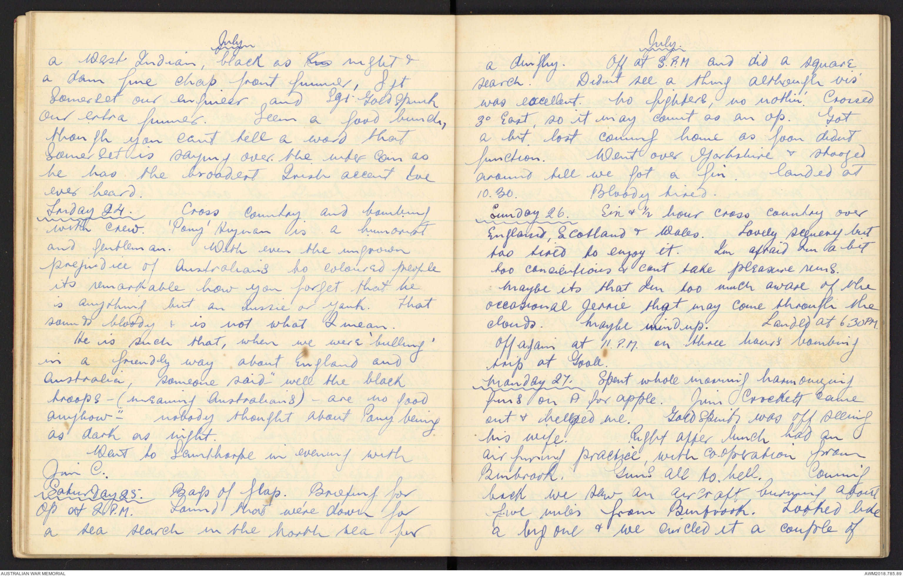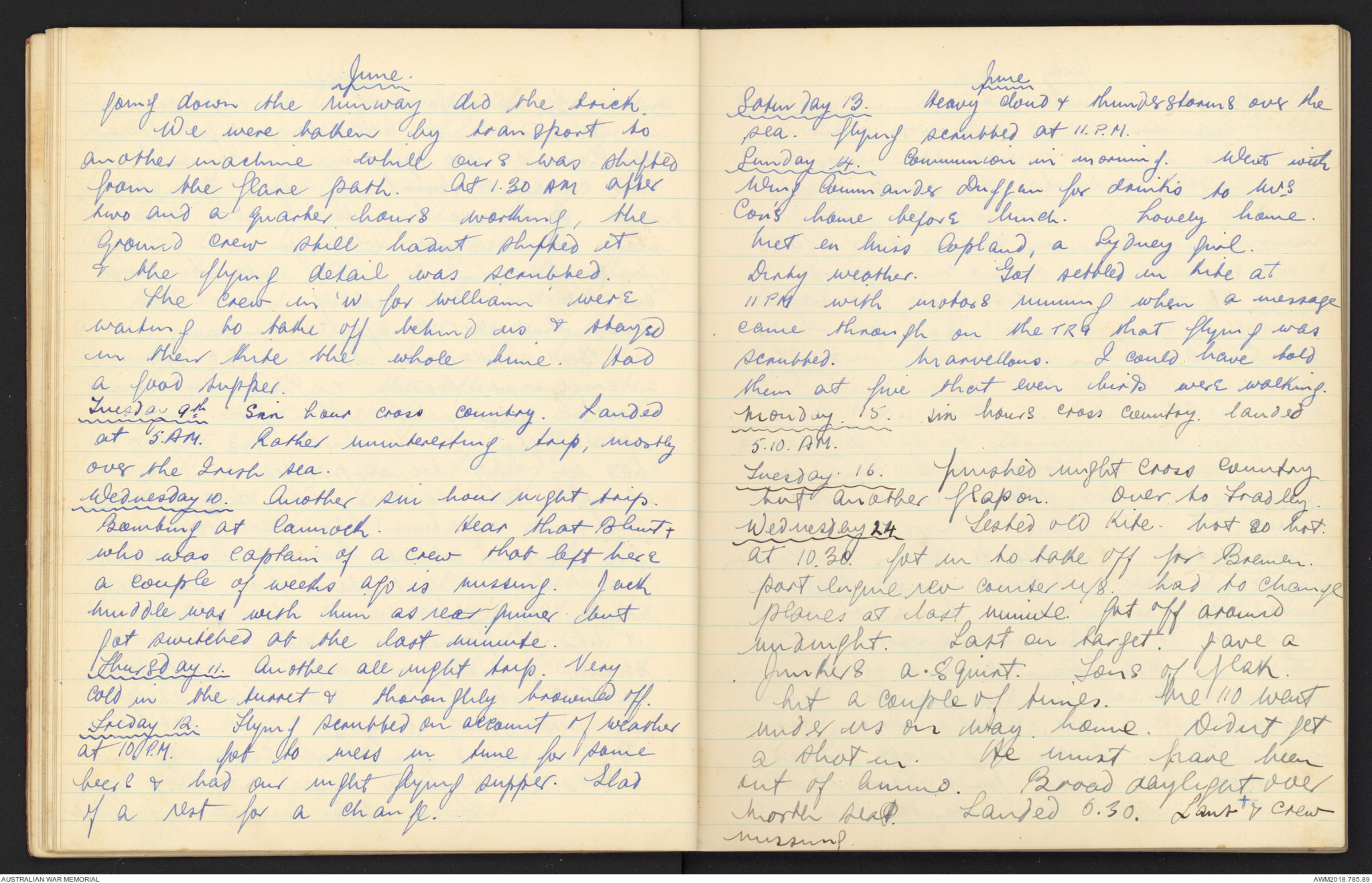 Monday 15. Sin hours Cross Country. landed