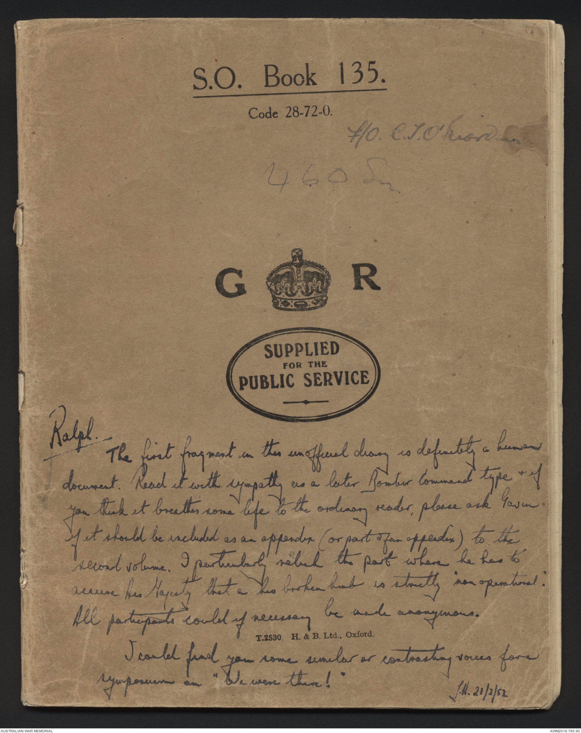 Diary of Flying Officer Clifford Timothy O'Riordan,1943