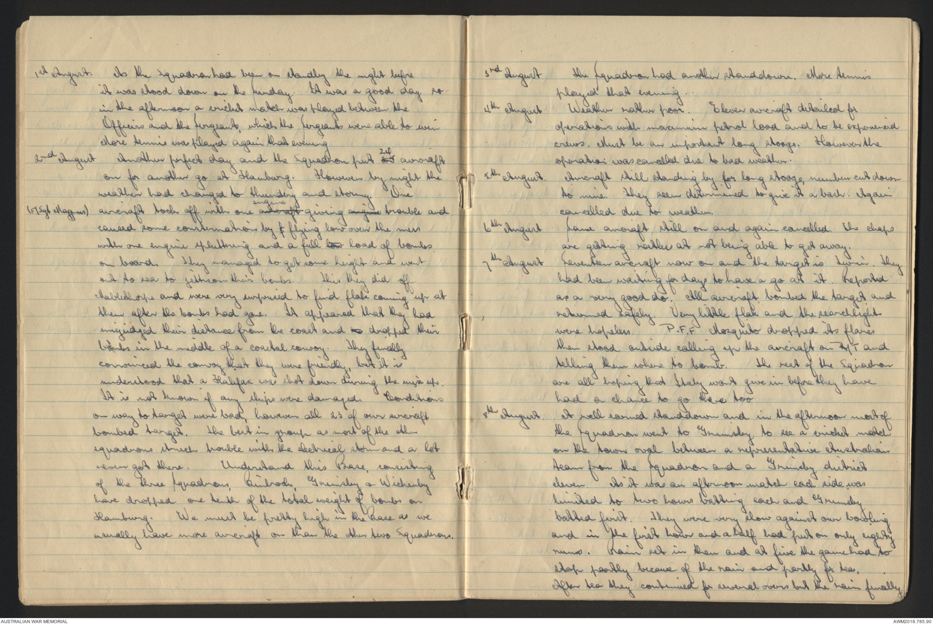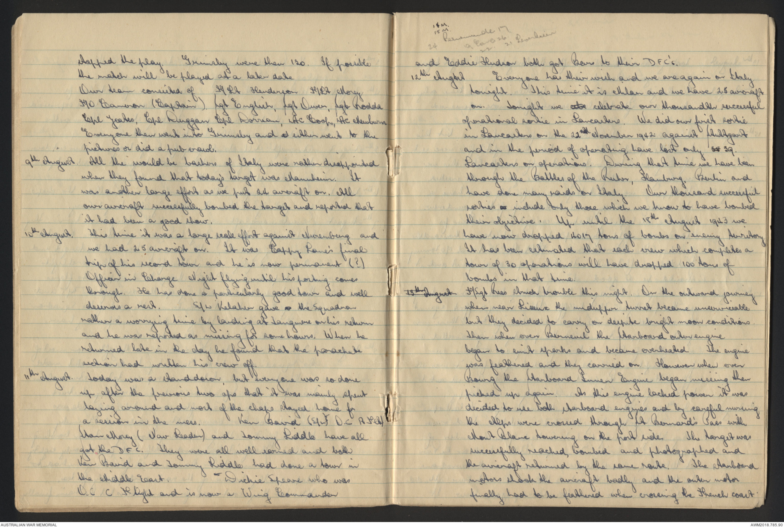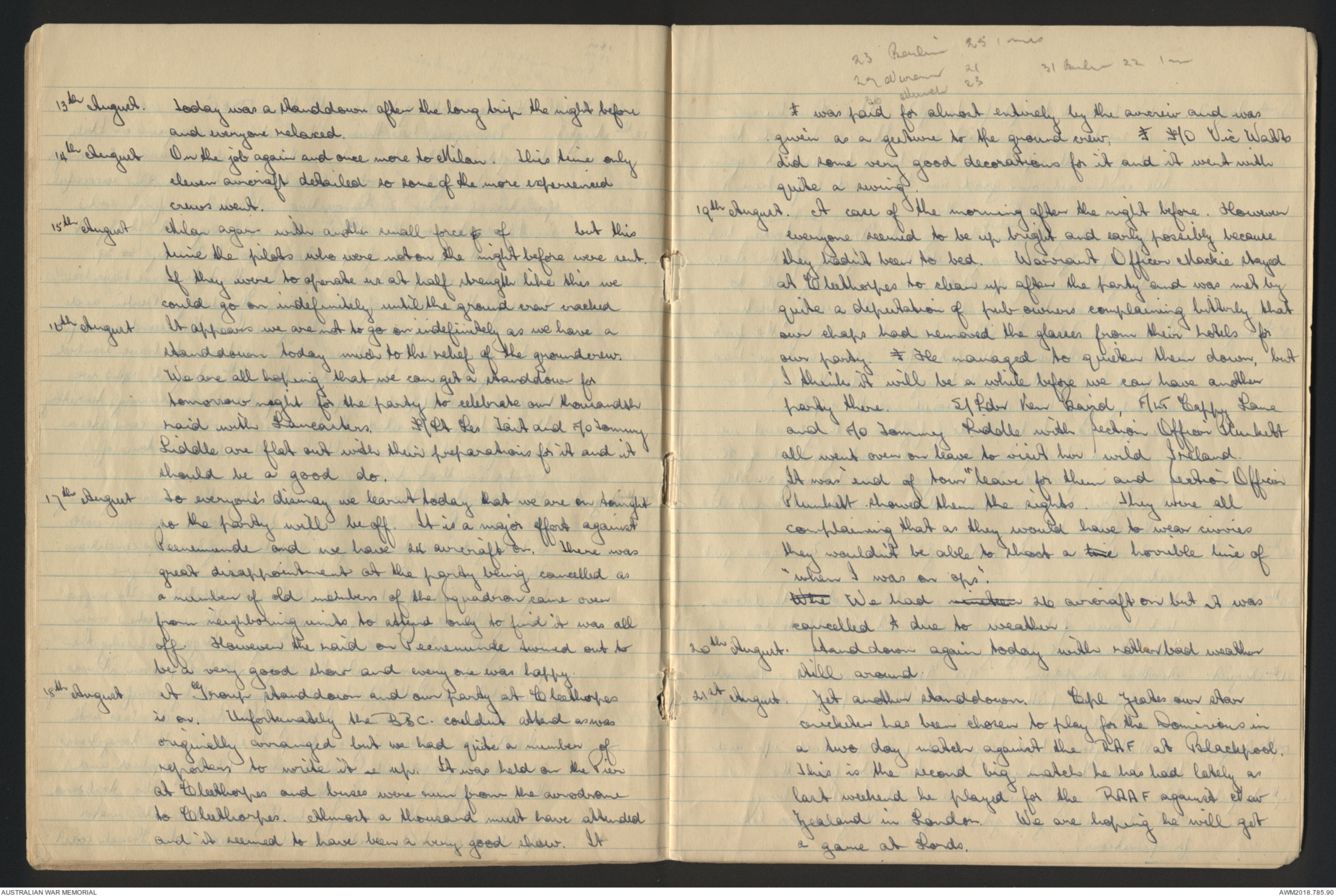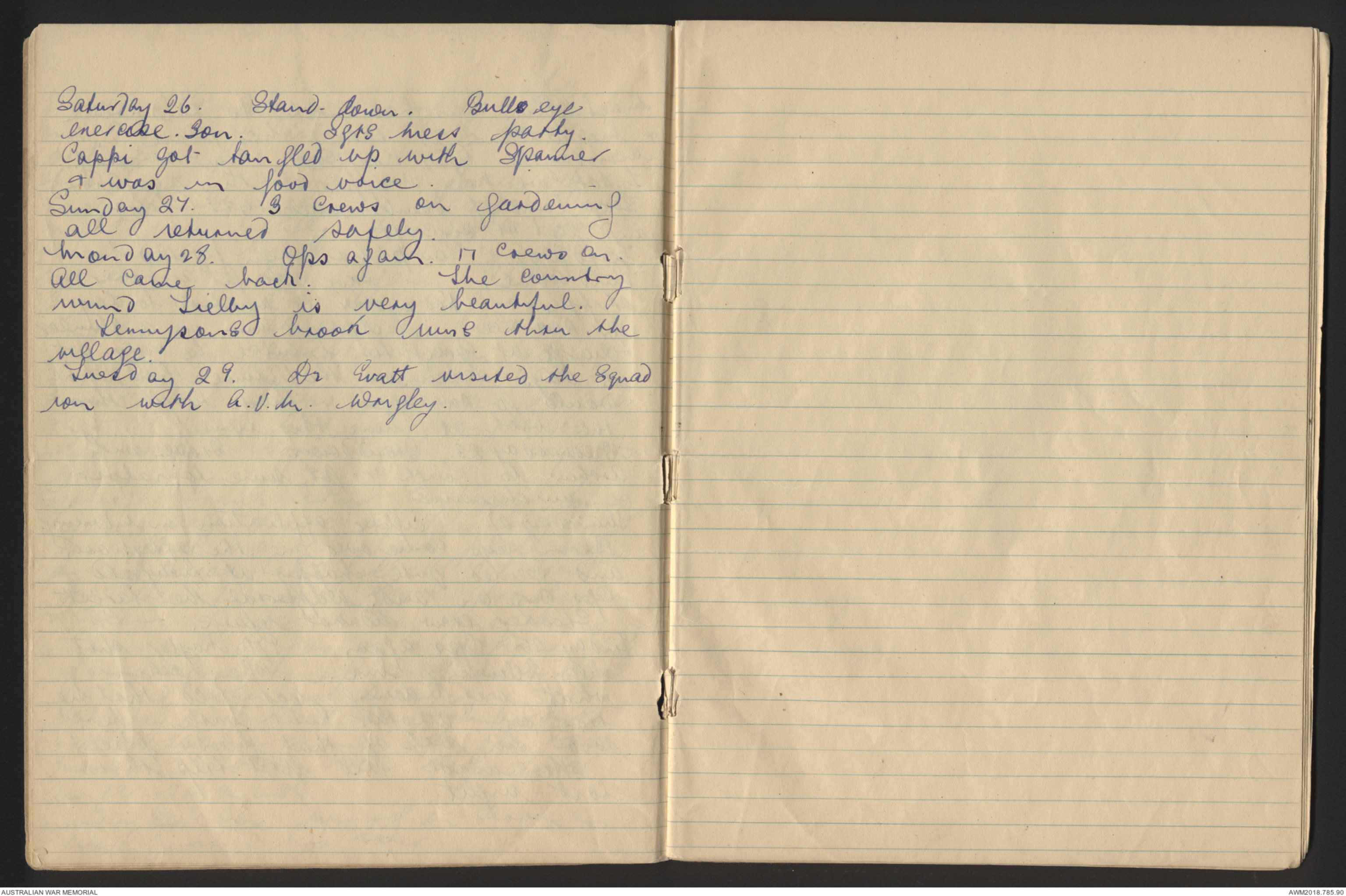 [*26th August*] Another standdown. Fl/Lt Greenacre went in a Lancaster