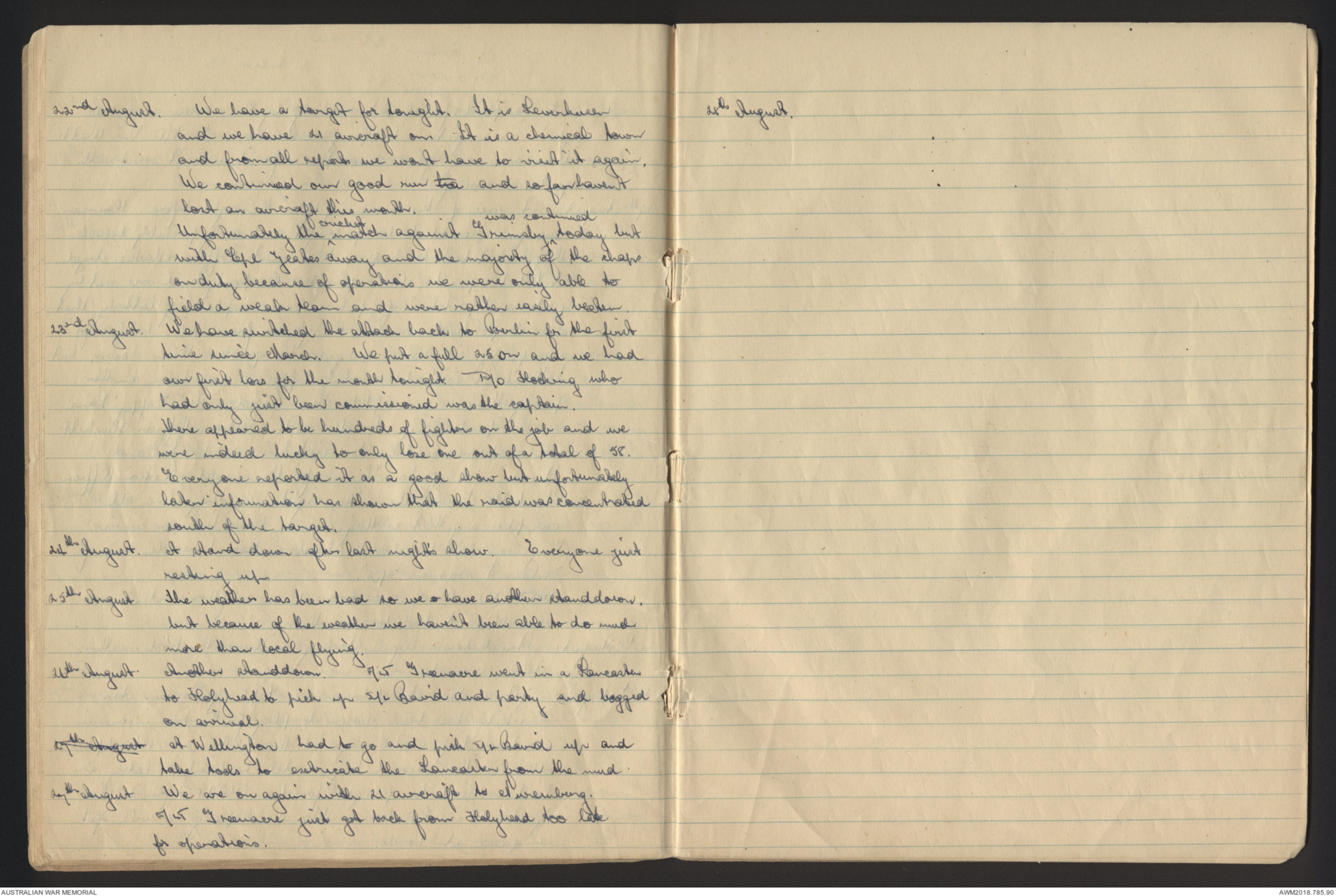 [*22nd August*] We have a target for tonight. It is Leverkusen
