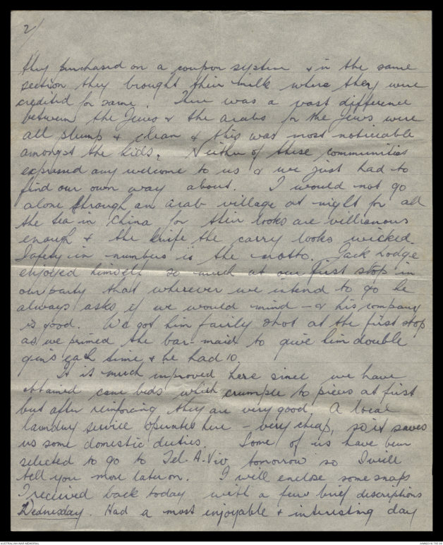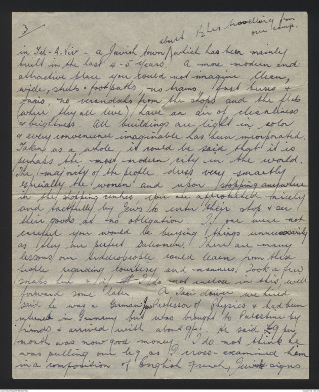 In Tel-A-Viv - a Jewish town ^about 1½hrs travelling from our camp which has been mainly