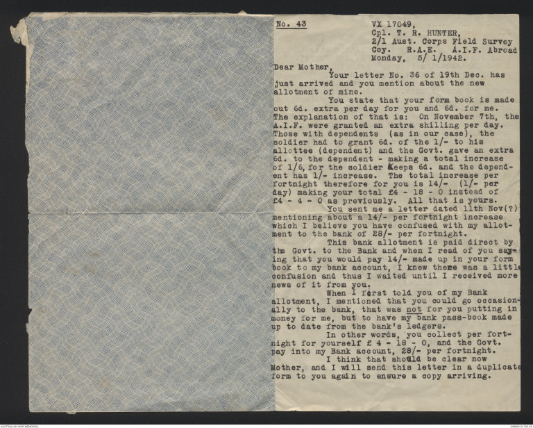 Letters of Thomas Rampton Hunter, 1940-1944 - Part 14
