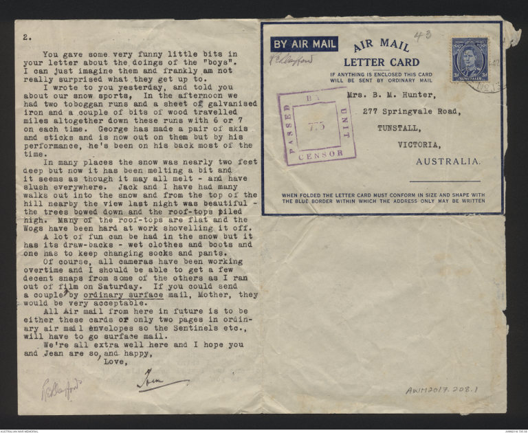 air mail enveloopes so the Sentinels etc.,