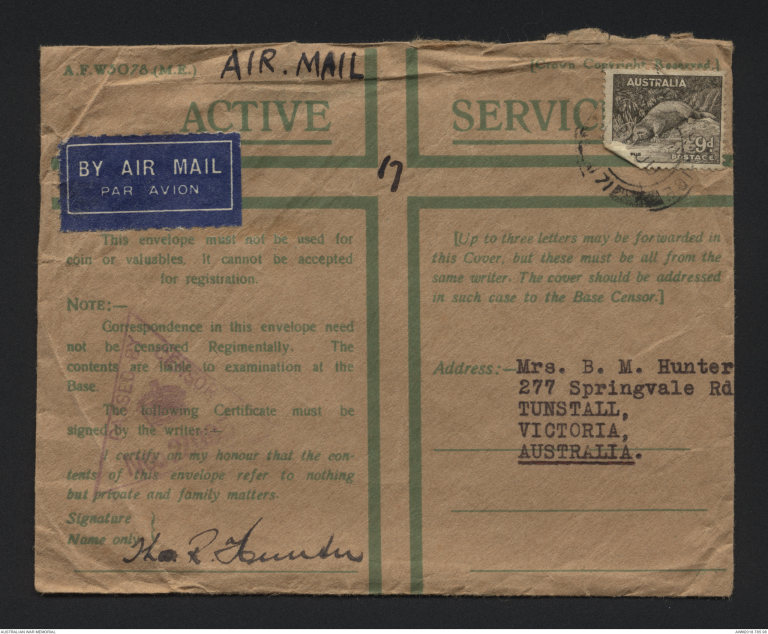 A.F.W3078. (M.E.) AIR MAIL (Crown Copyright Reserved)