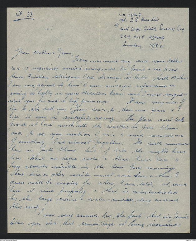 Letters of Thomas Rampton Hunter, 1940-1944 - Part 9