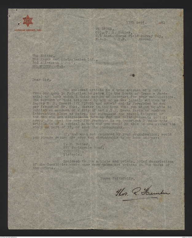 Cpl Thos. R. Hunter, 3rd Sept 1941