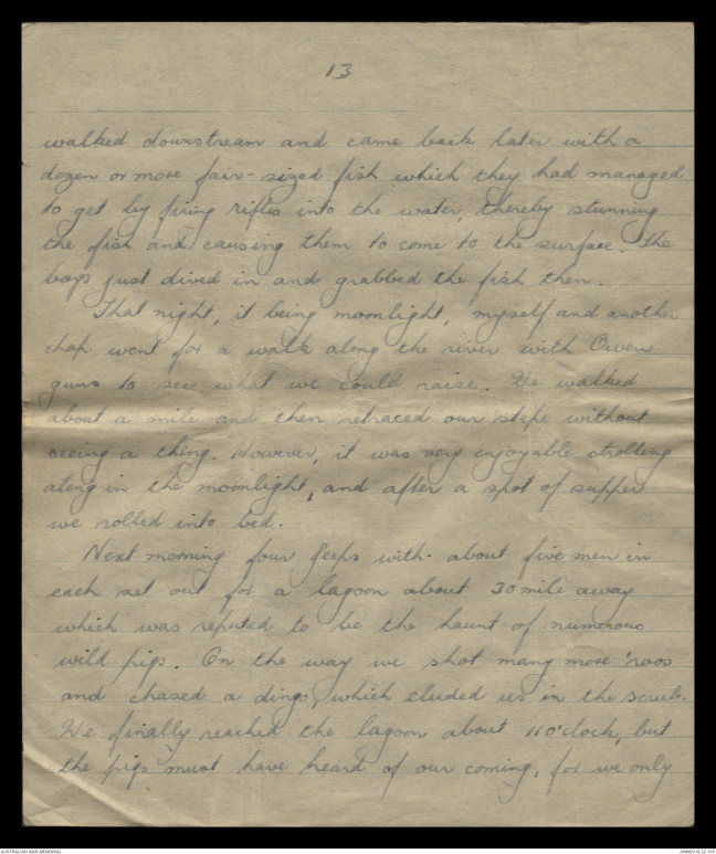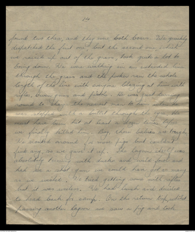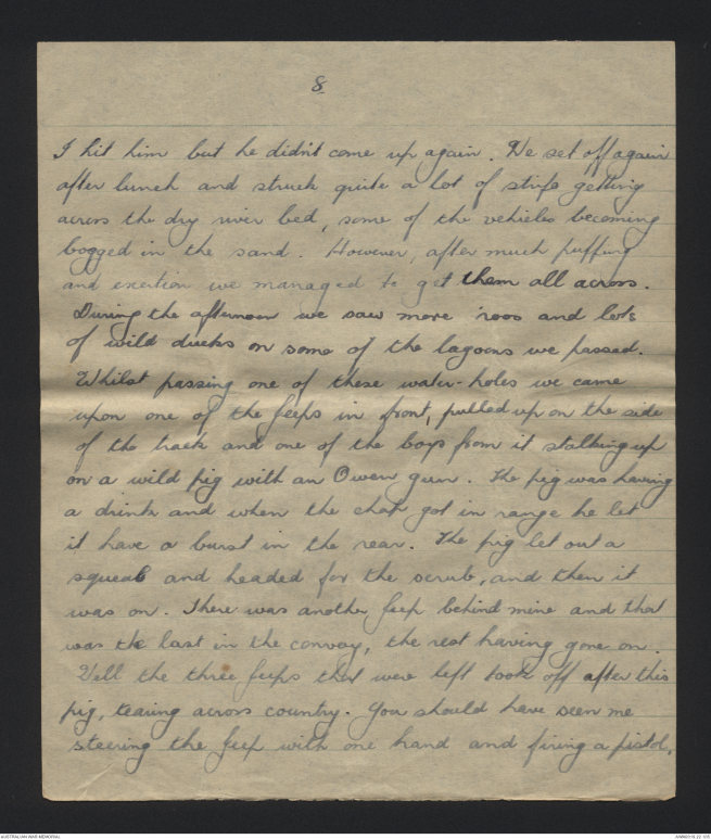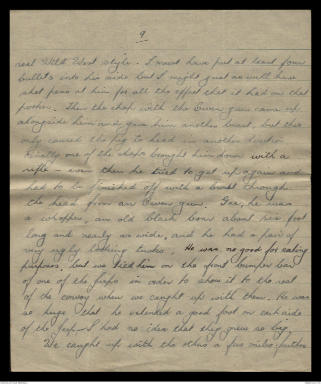 on a wild pig with an Owen gun. The pig was having