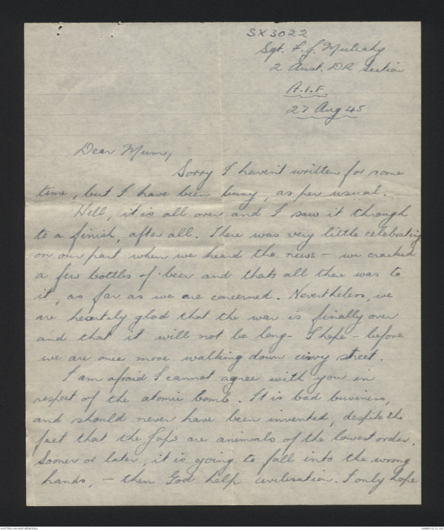 Letters from Frank John Mulcahy to his family, 1941-1945 - Part 13