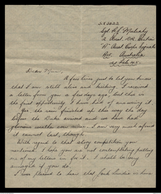 Letters from Frank John Mulcahy to his family, 1941-1945 - Part 5
