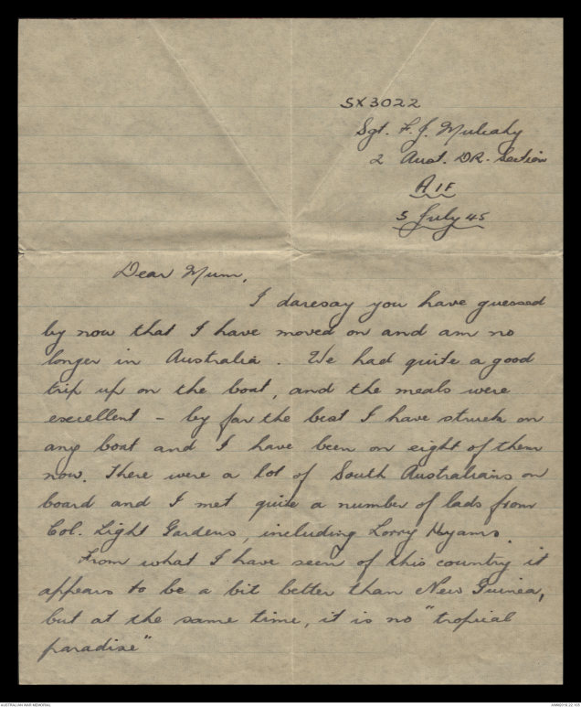 Letters from Frank John Mulcahy to his family, 1941-1945 - Part 10