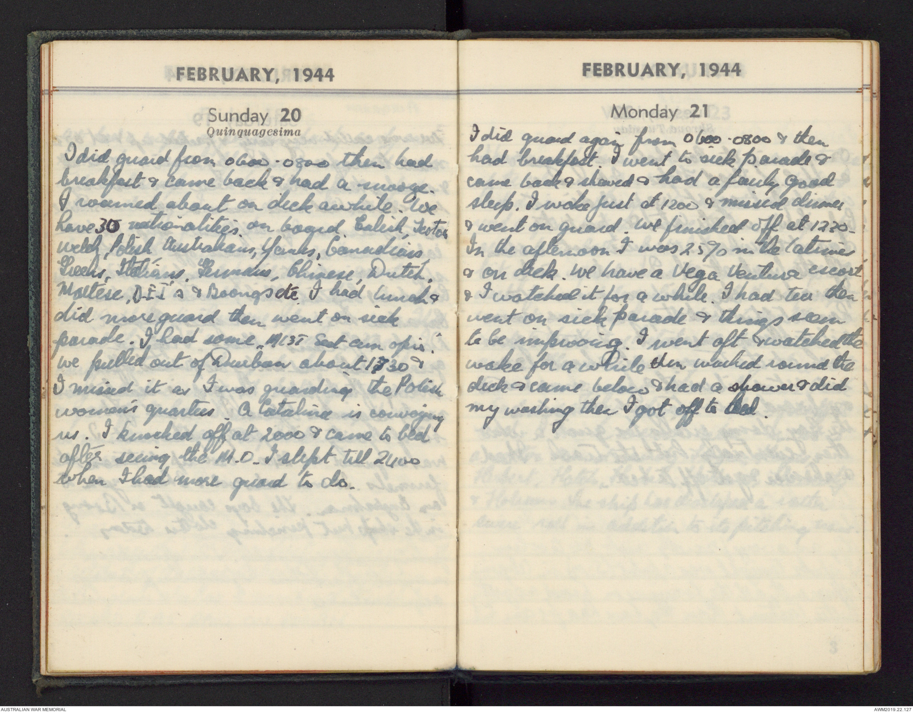 & went on guard. We finished off at 1230 -