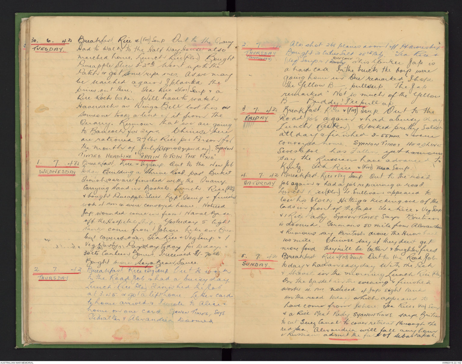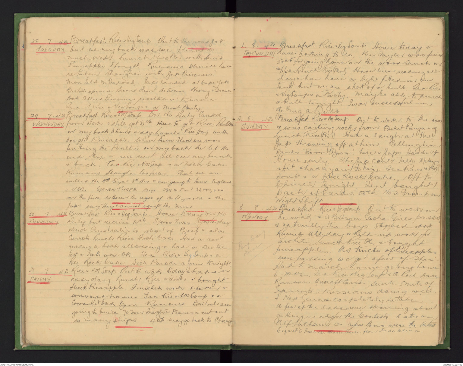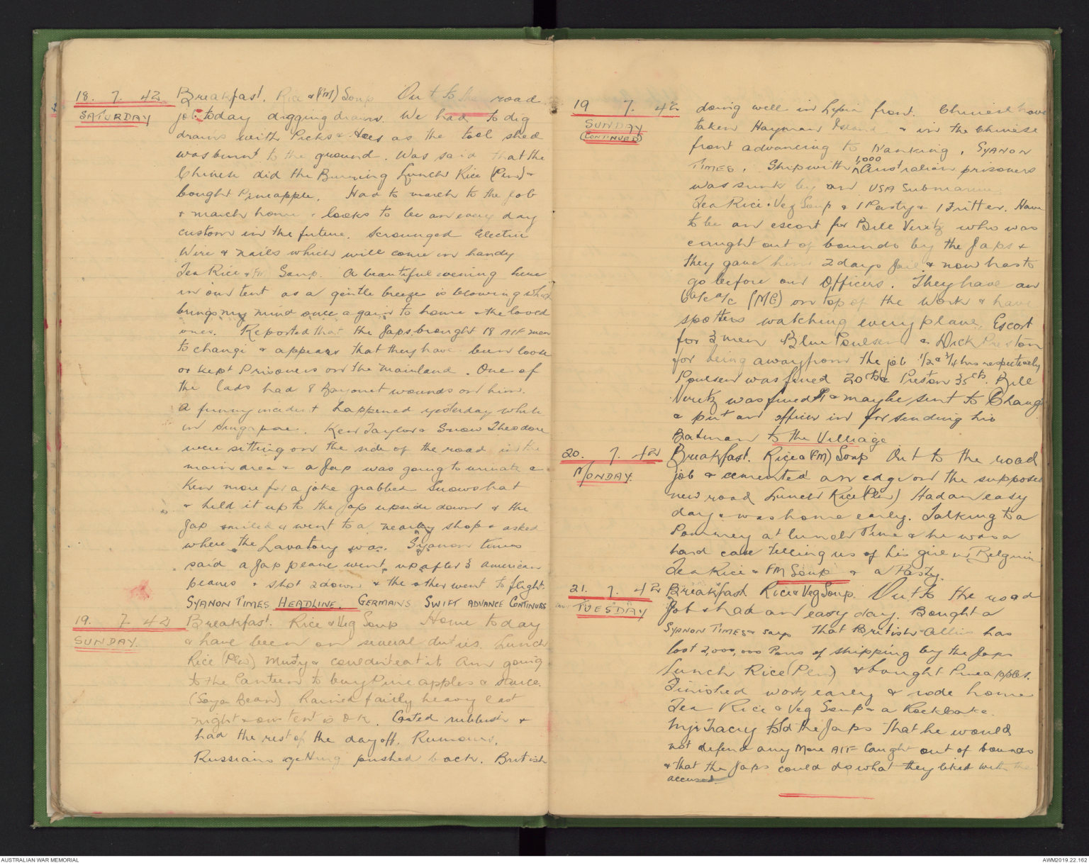 30/7/42. Lunch Rice (Pln) Have been reading all