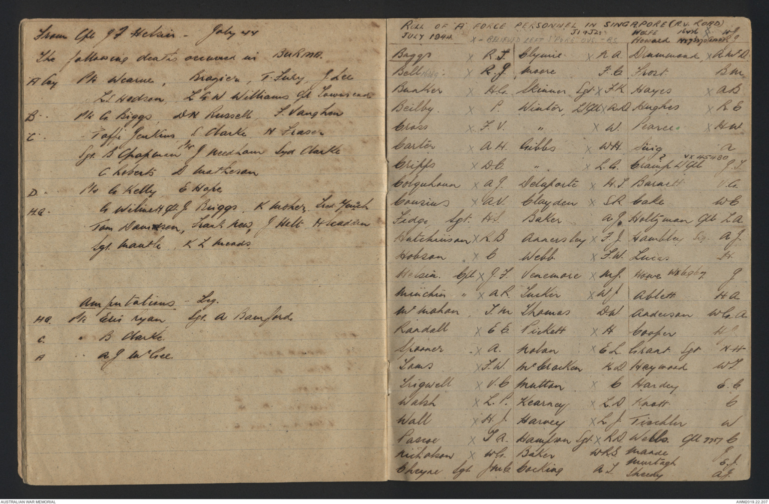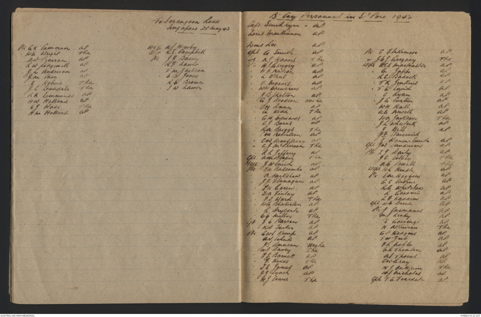 ROLL OF 'A' FORCE PERSONNEL IN SINGAPORE (R.V. ROAD)