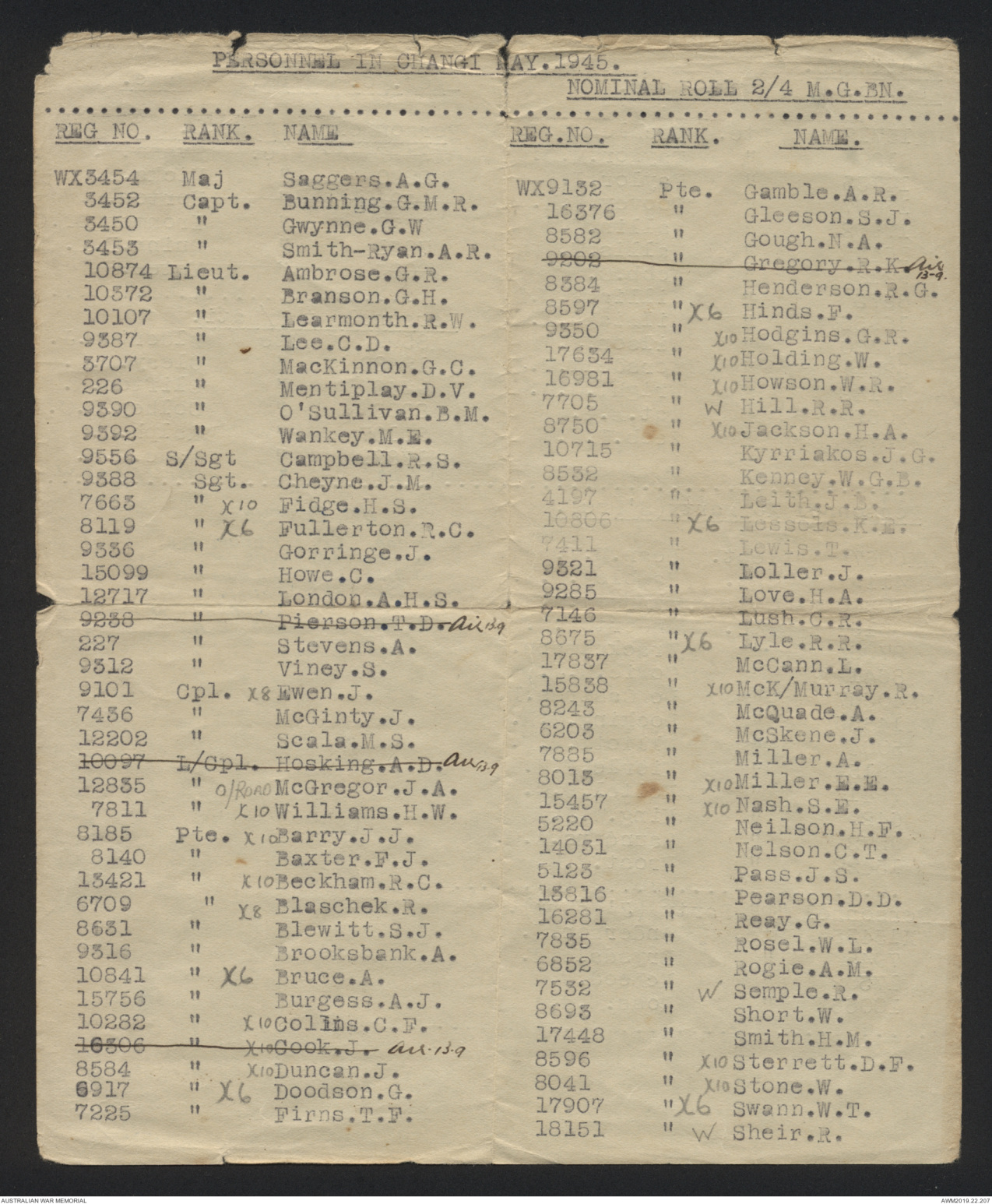 | WX3454 | Maj | Saggers.A.G. | WX9132 | Pte. | Gamble.A.R. |