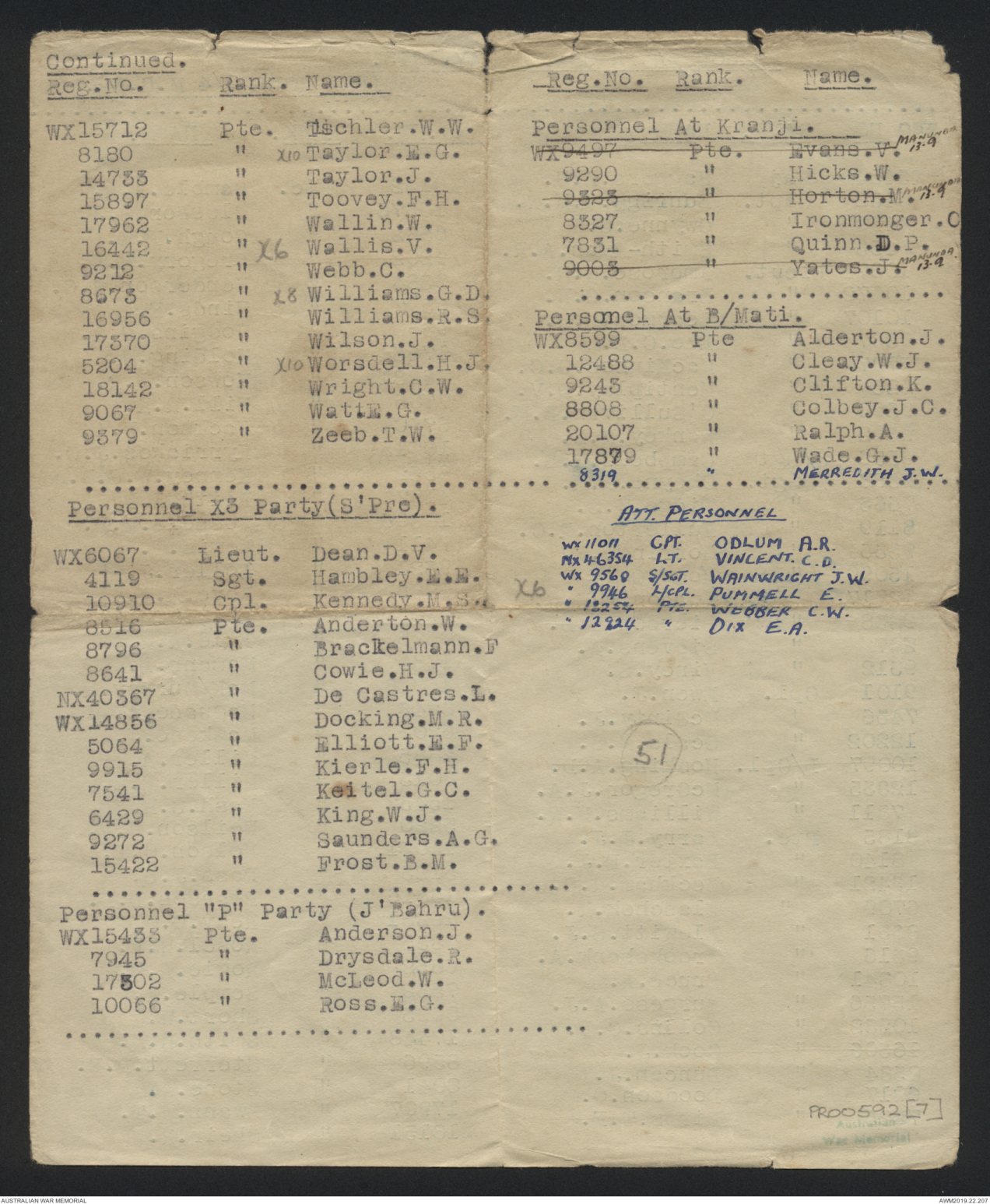 | WX15712 | Pte. | Tschler.W.W. | Personnel At Kranji. | ||