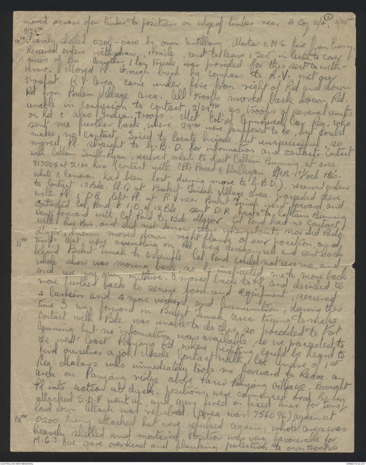 to contact 12 Bde. H.Q. at Bukit Timah Village area. proceeded there