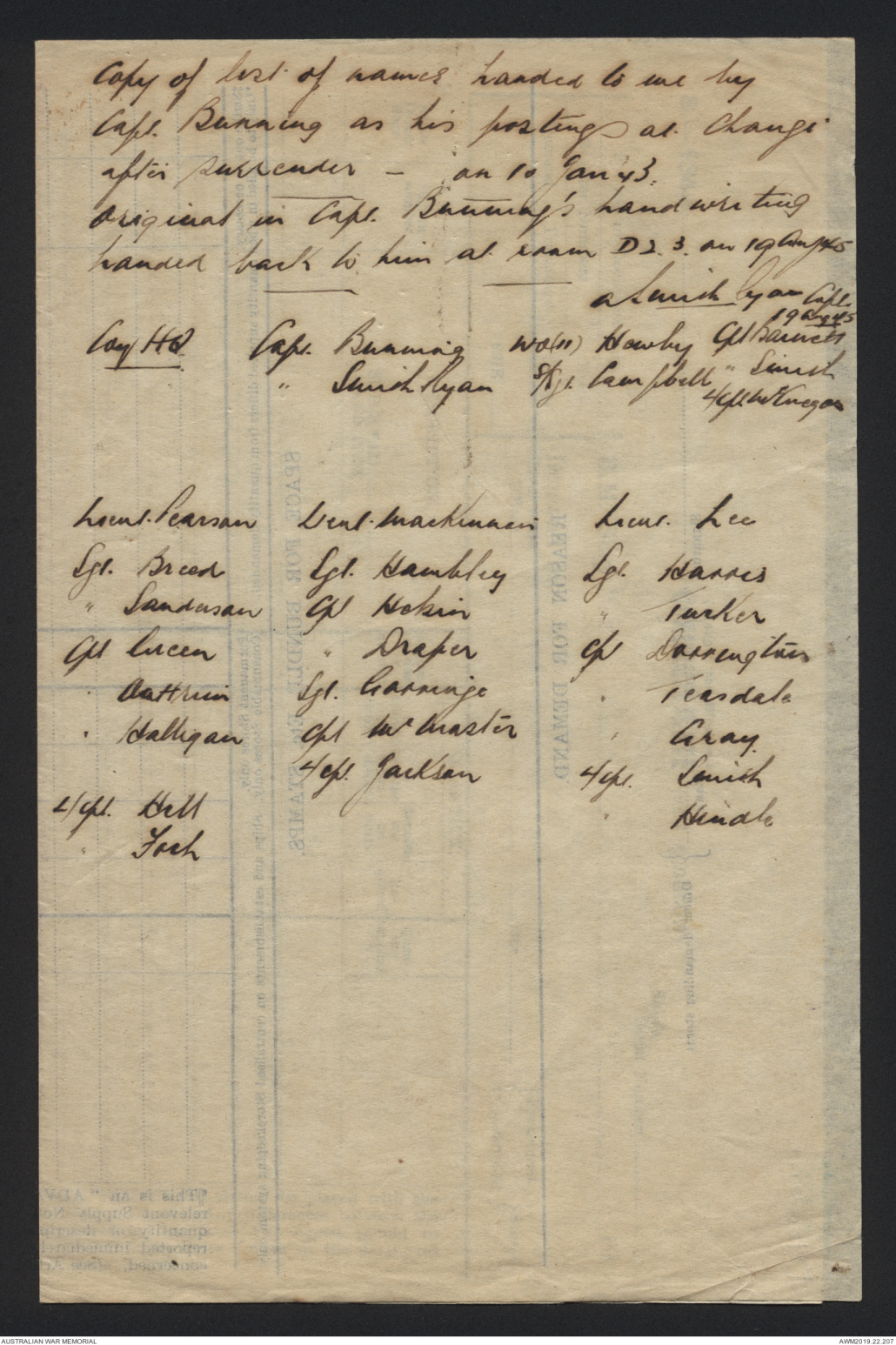 withdrawn. ^As arranged by Coy Comd with 2/26 Bn. Working party of 40 taken to Kranji