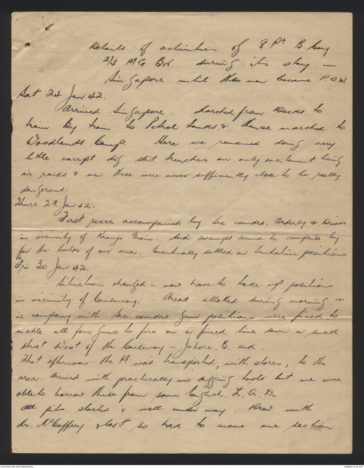 Sunday 8 Feb 42. Severe shelling. Pte Baker our stretcher bearer