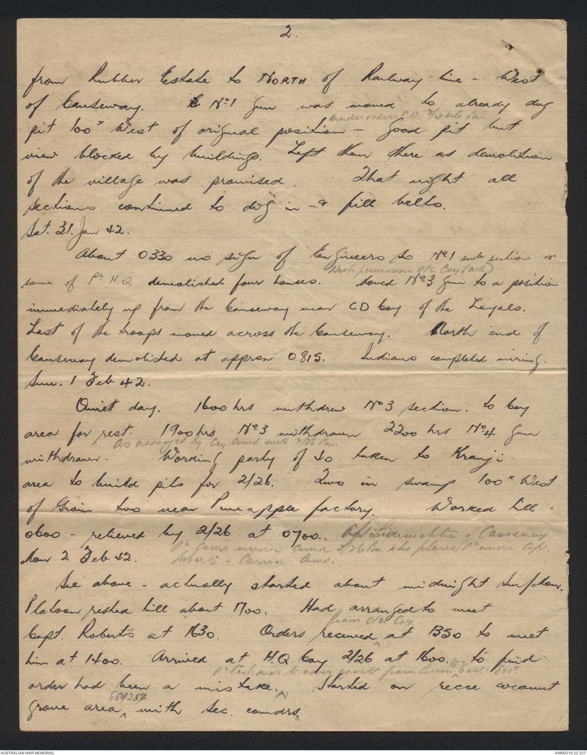 [*Feb 2*] Moved from vicinity Causeway to Area 728212 in Reserve attached