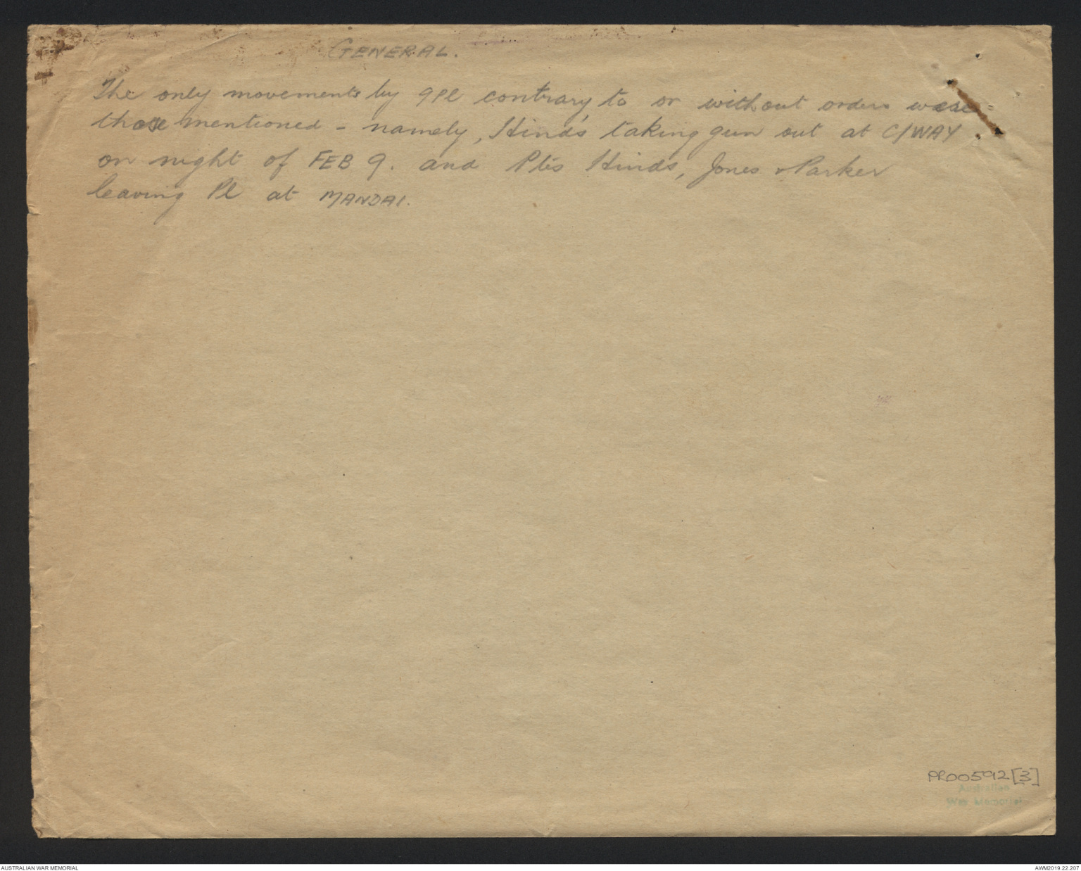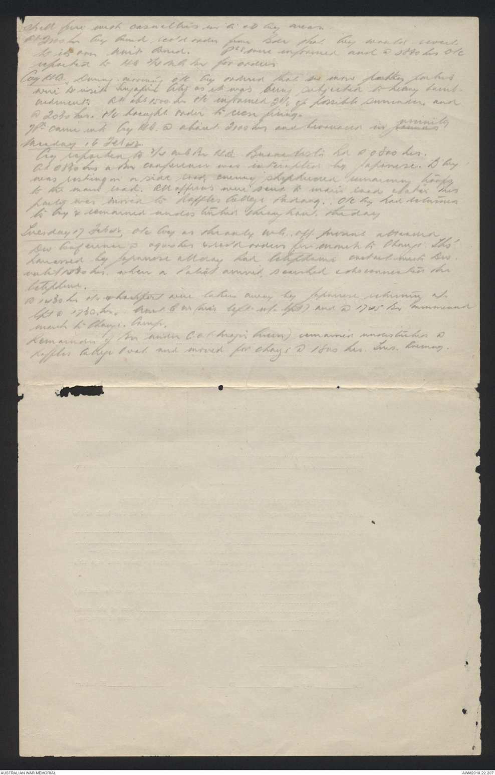 a Japanese mistaking him for an Indian. All returned safely. ∧@1300hrs Bn [[?]] 2/30 [[?]] [[?]] withdraw