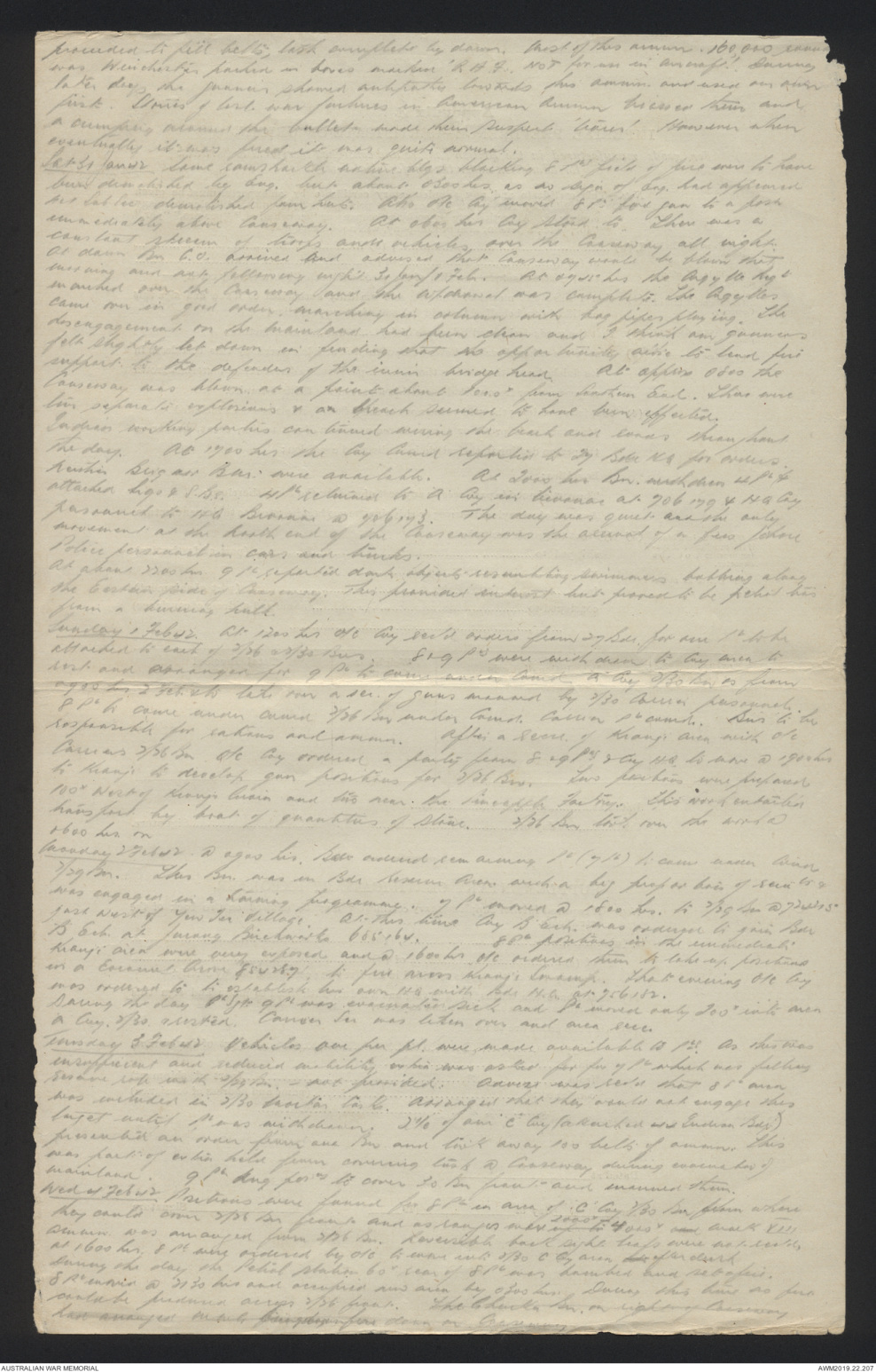 proceeded to fill belts; task complete by dawn. Most of this ammn. 160,000 round