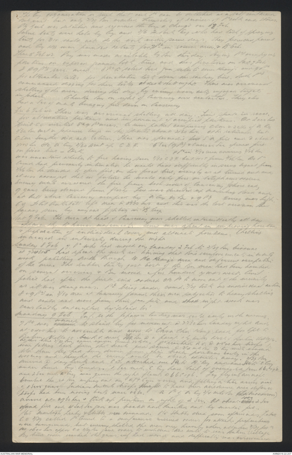 7 Pl with 2/29 Bn @ Tengah Aerodrome. Heavily shelled 0200-0400 hrs. Pl was