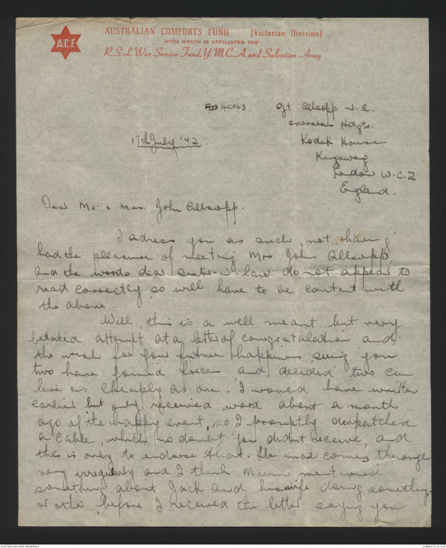 Letters relating to William Arthur Allsopp - Part 9