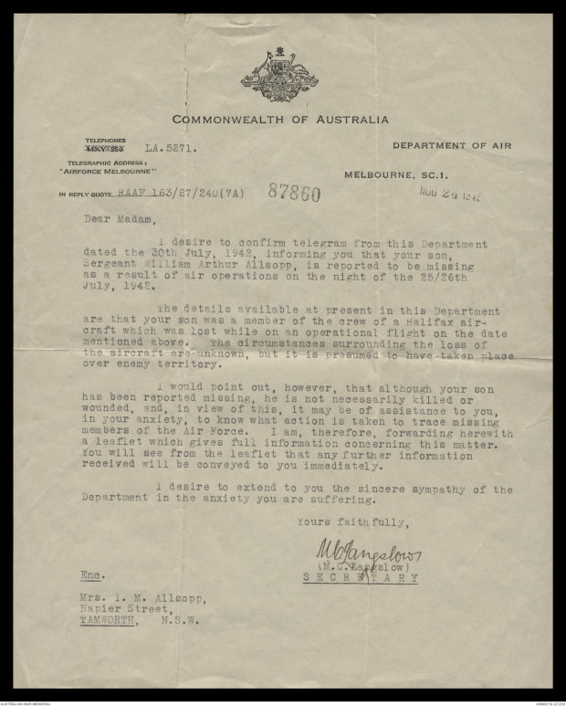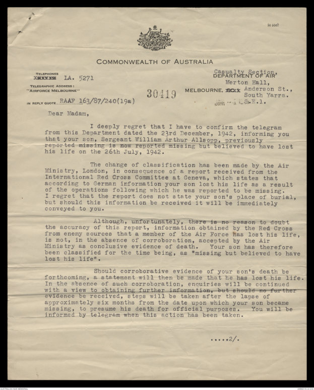 dated the 30th July, 1942, informing you that your son,