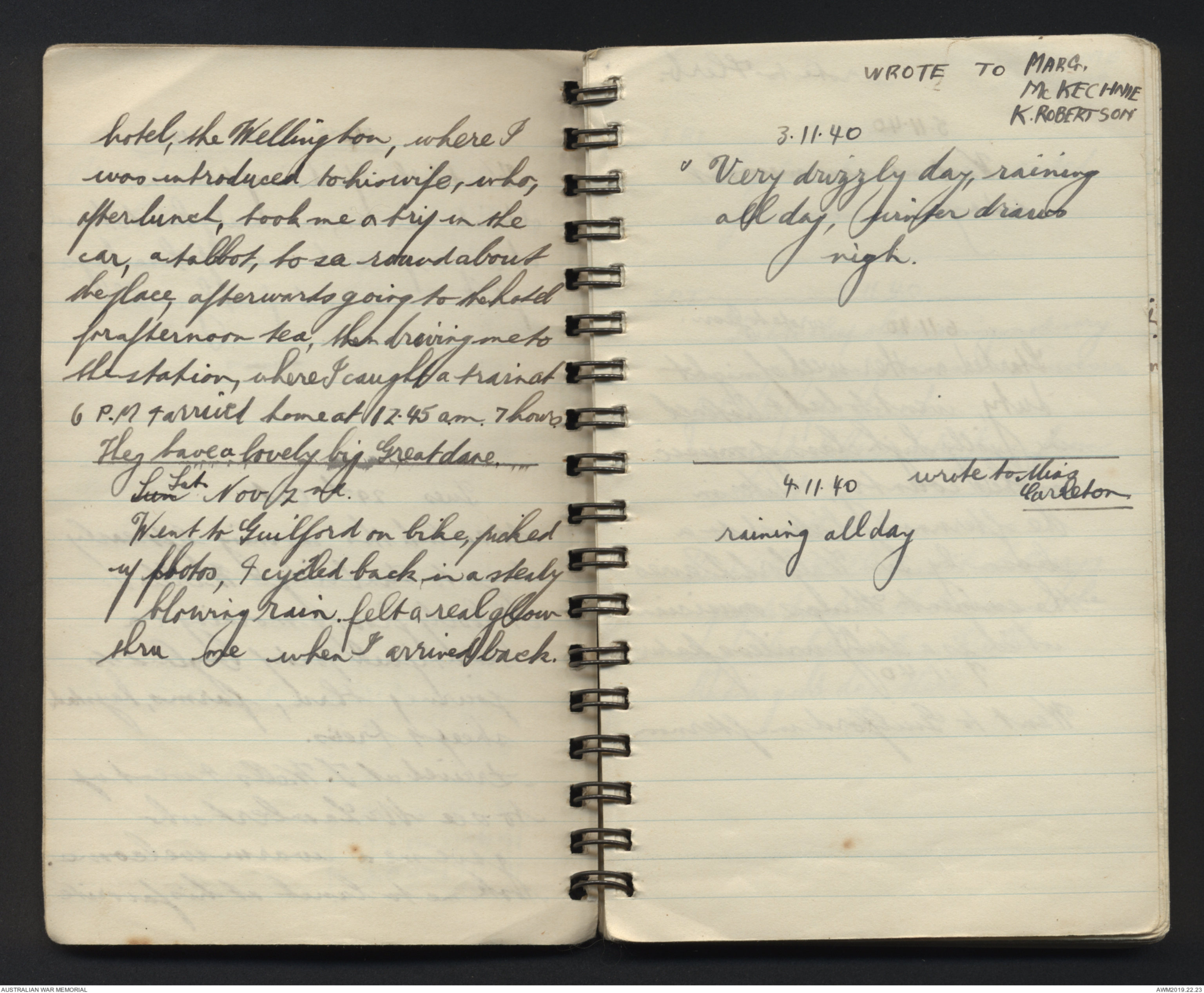 Diary of George Loughlin Blore - October 1940 - September 1941 - Part 1