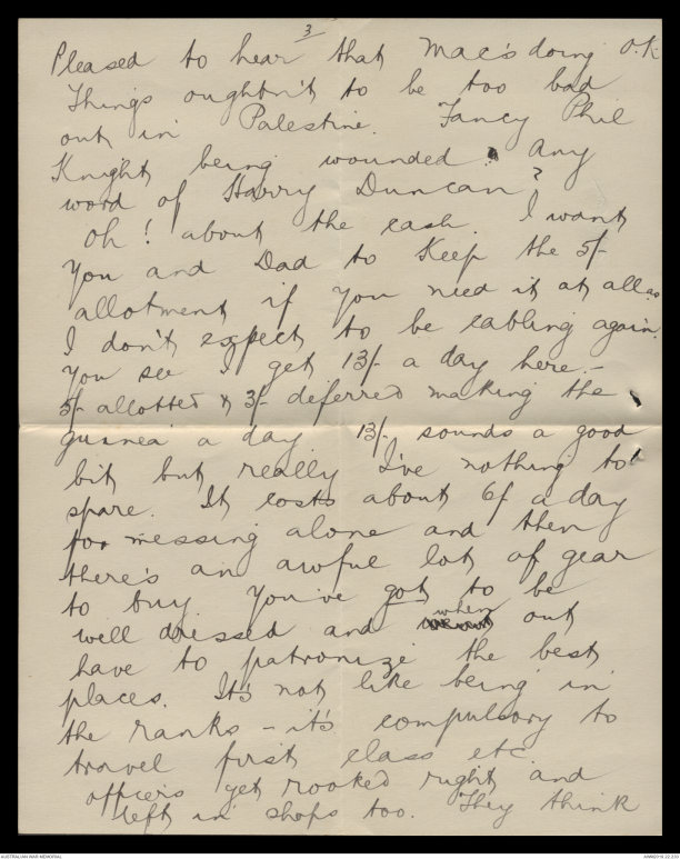 You see I get 13/- a day here -