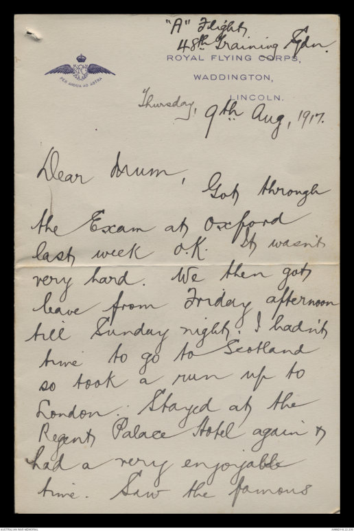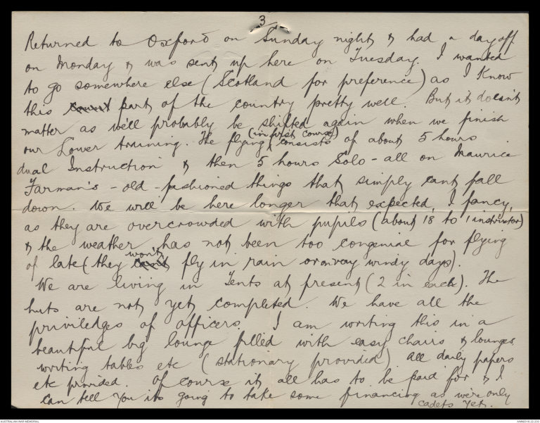 our Lower training. The flying ^(in first course) consists of about 5 hours