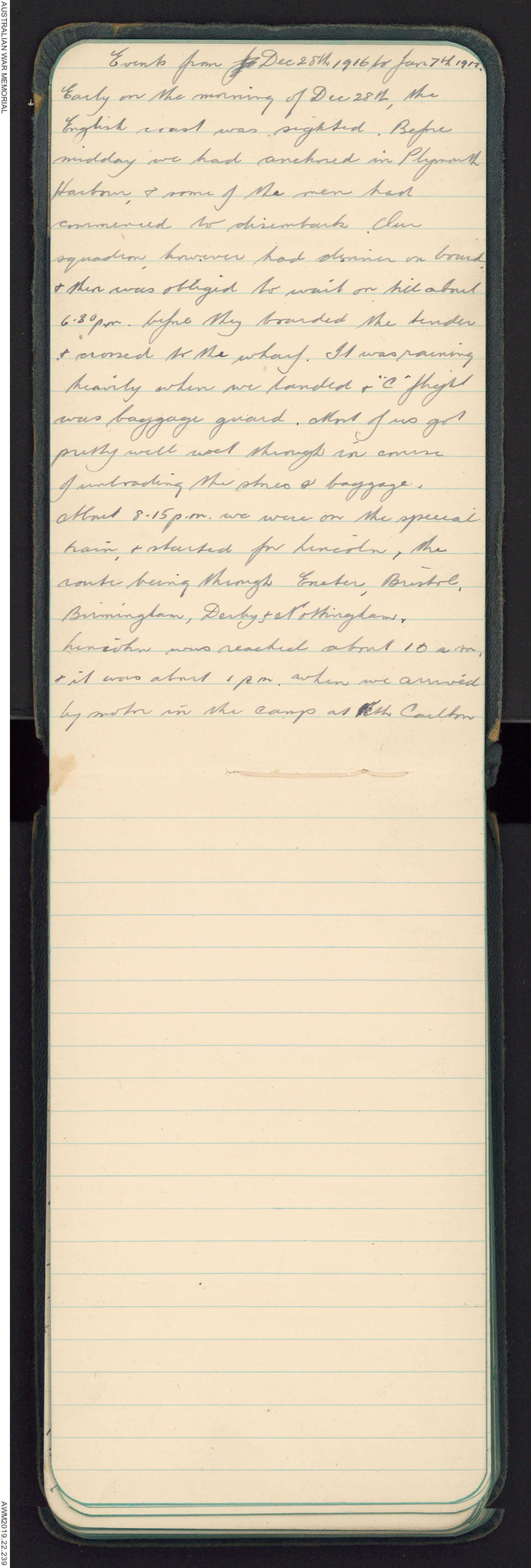 Events from Ja Dec 28th 1916 to Jan 7th1917.