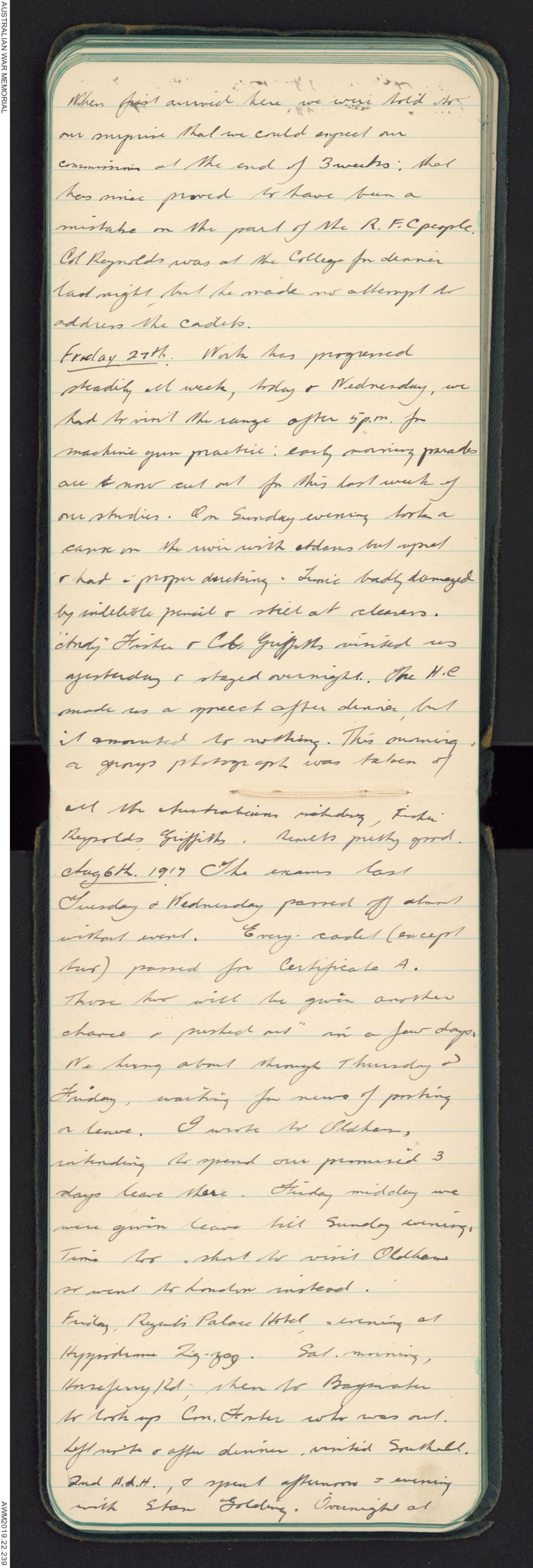 Diary of Second Lieutenant Harold Gordon Cornell- 1916-1917- Part 5