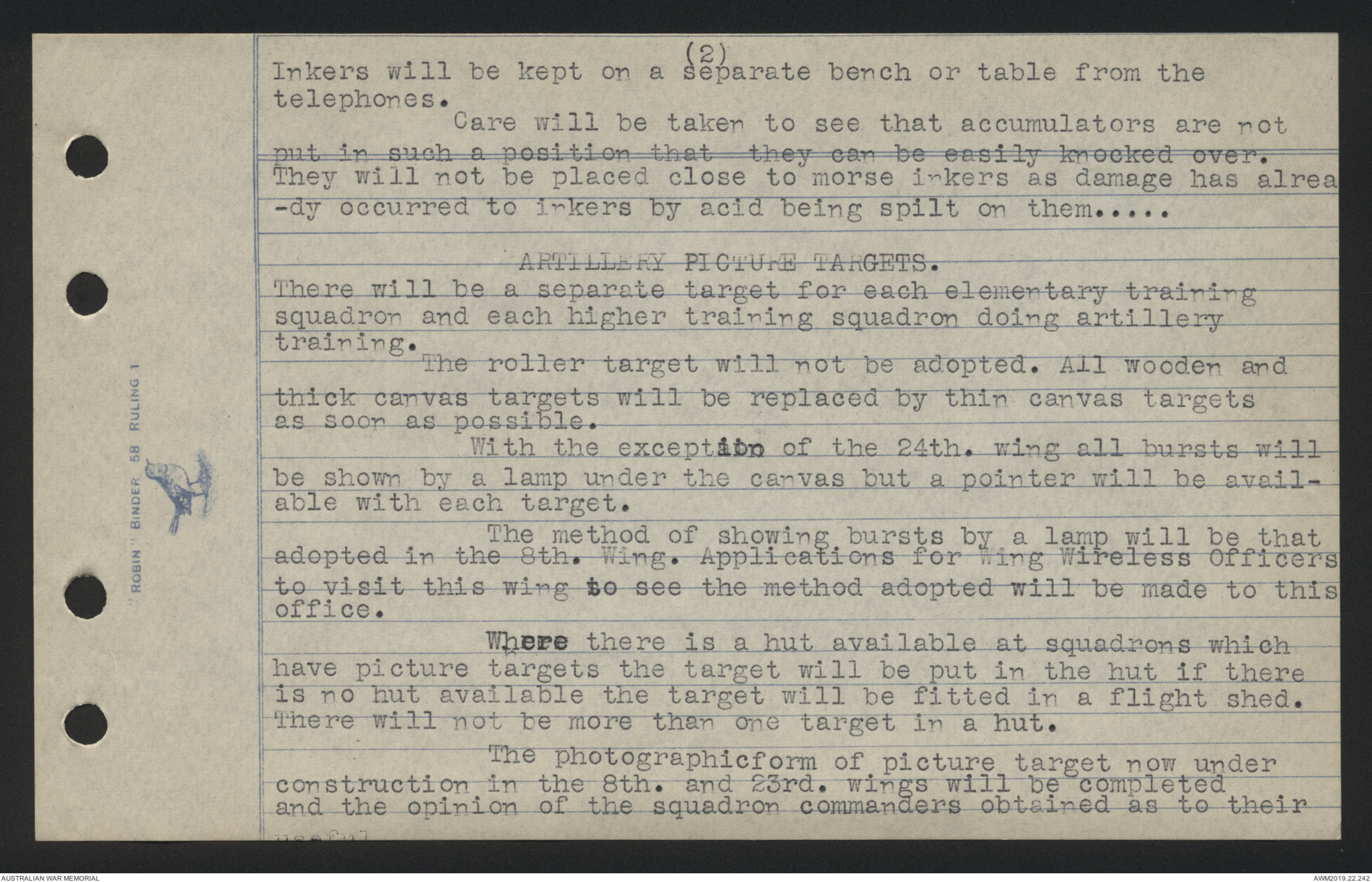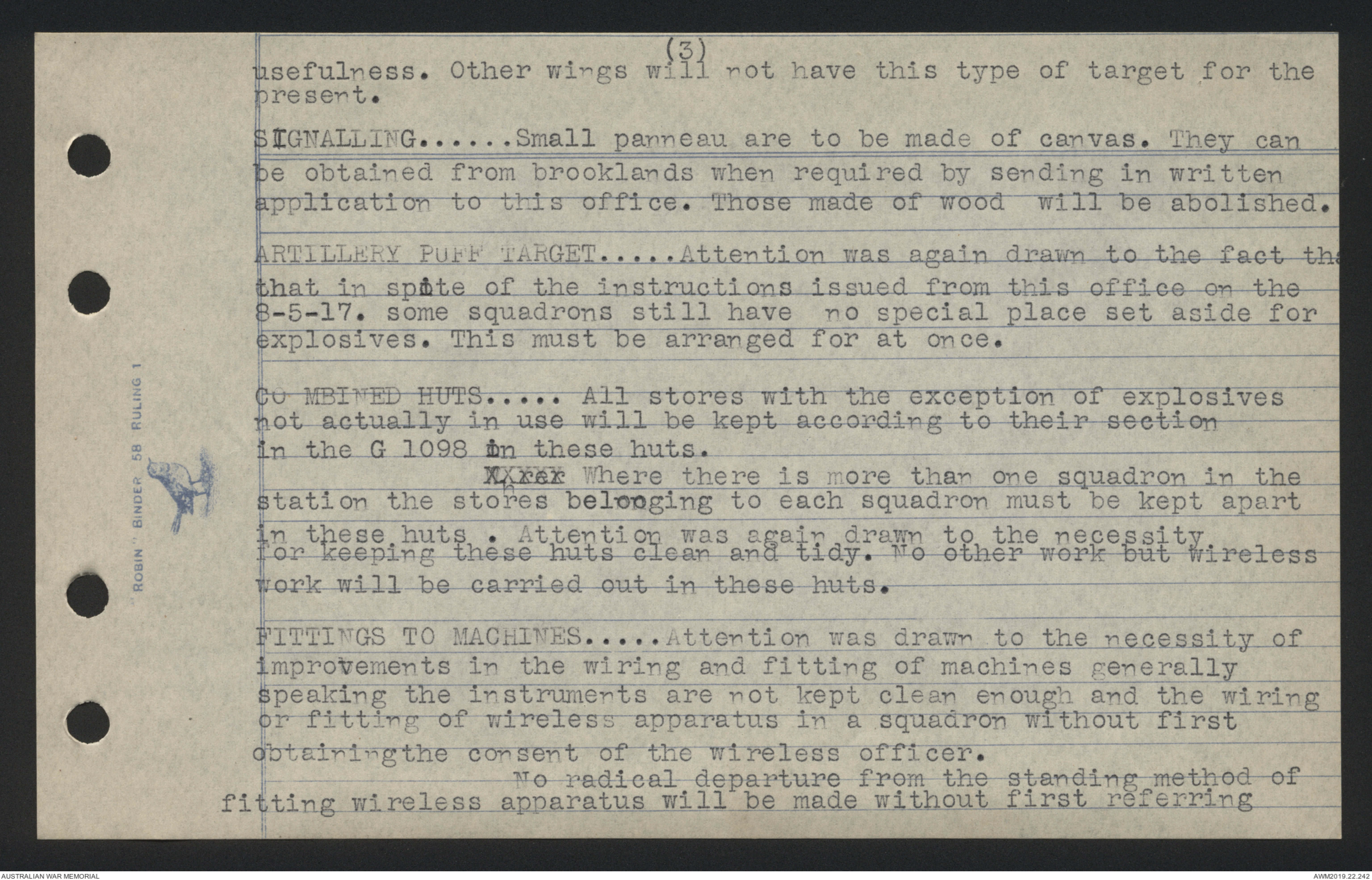 station the stores belonging to each squadron must be kept apart