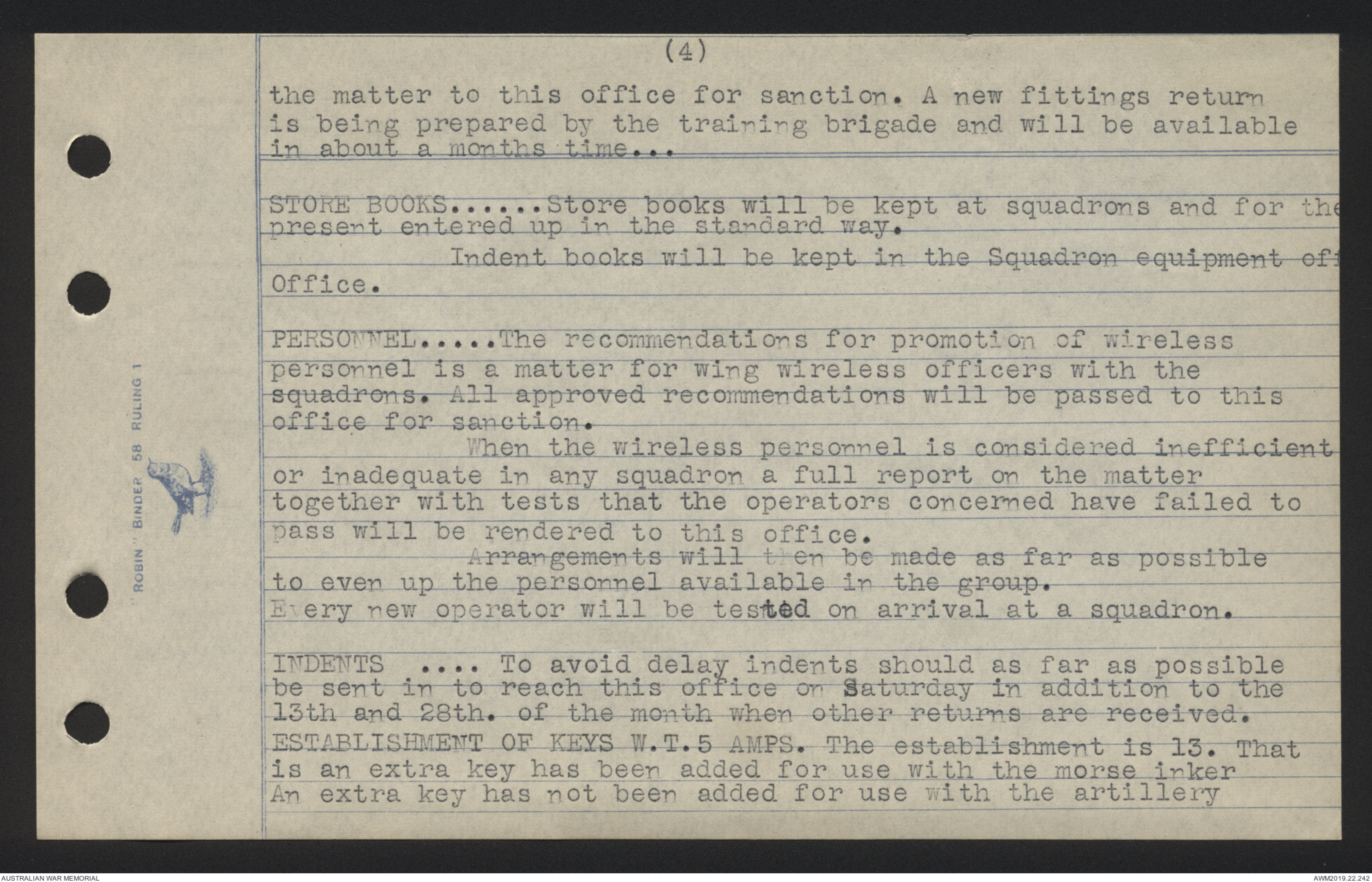 Indent books will be kept in the Squadron equipment of