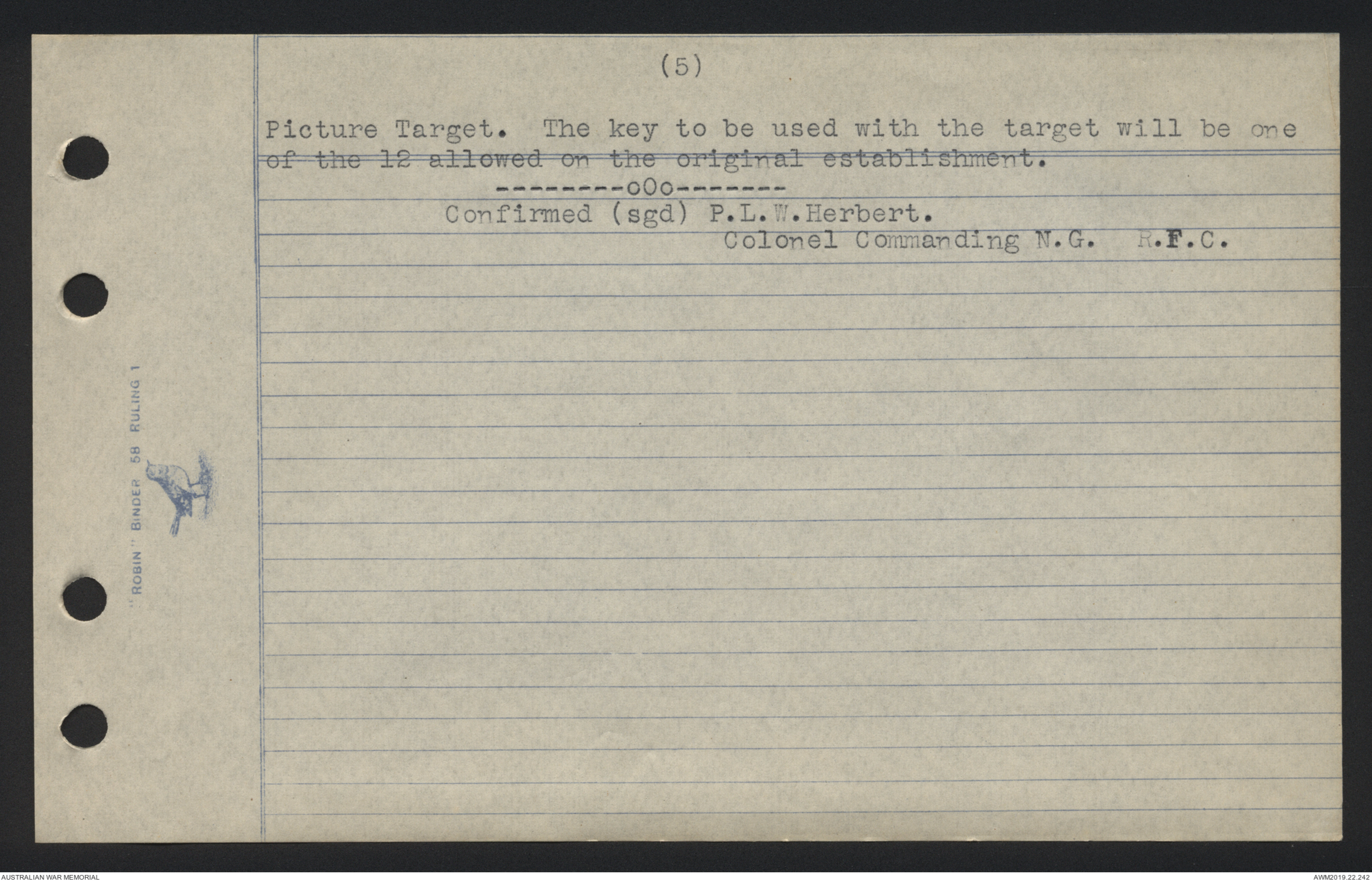 Confirmed (sgd) P.L.W. Herbert.