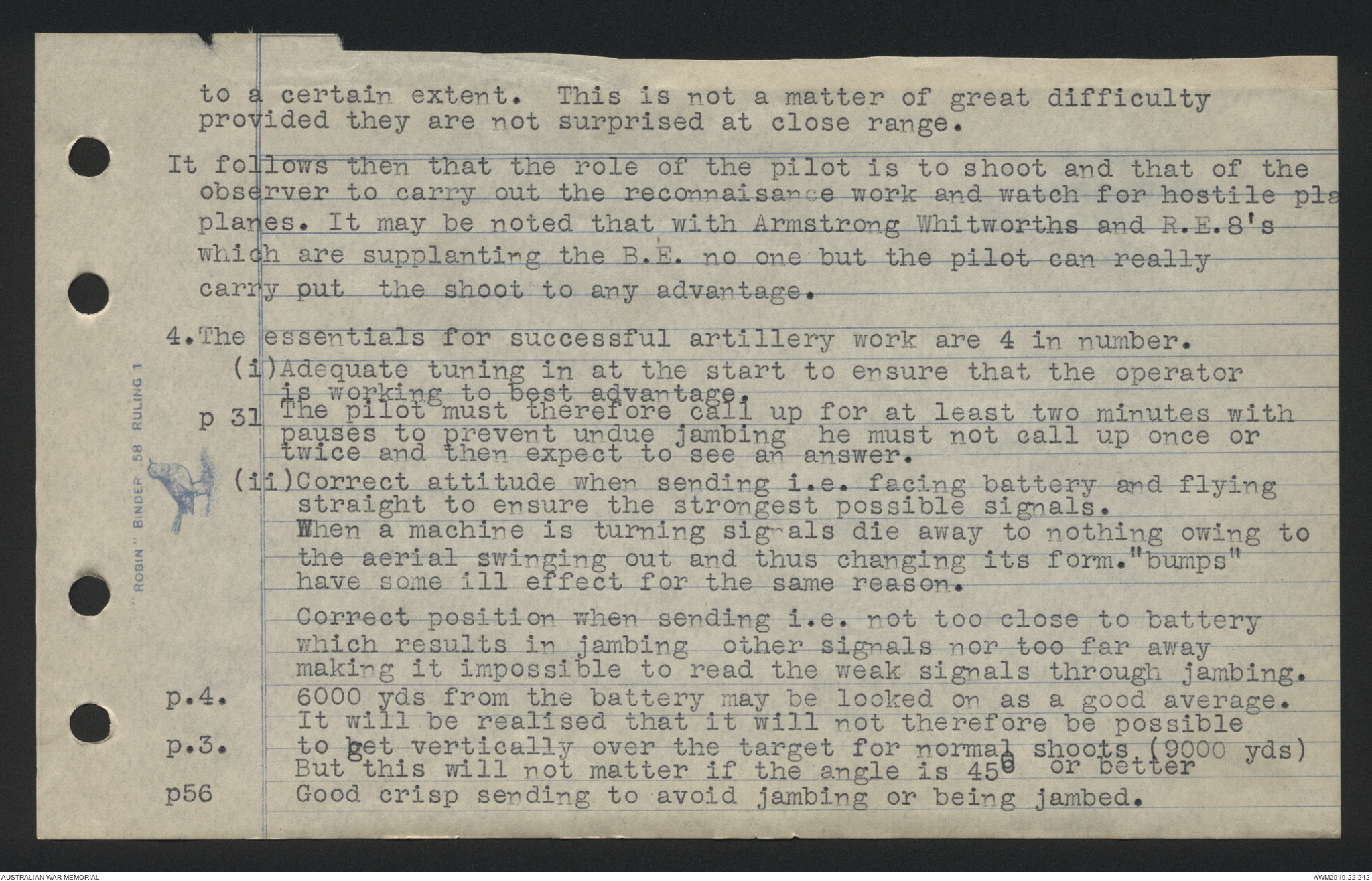 cooperation of aircraft with artillery they merely emphasise