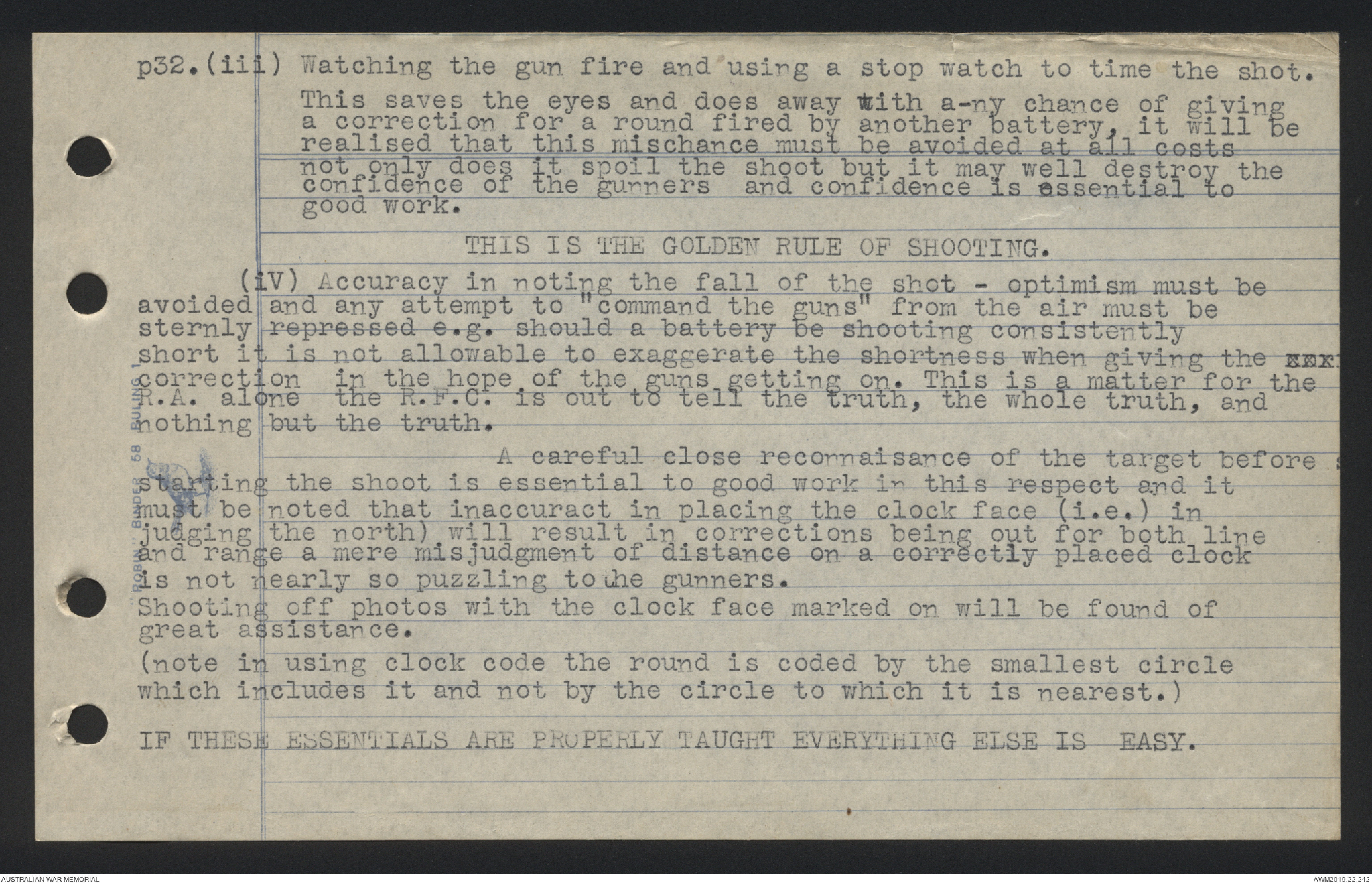 (iv) Accuracy in noting the fall of the shot - optimism must be