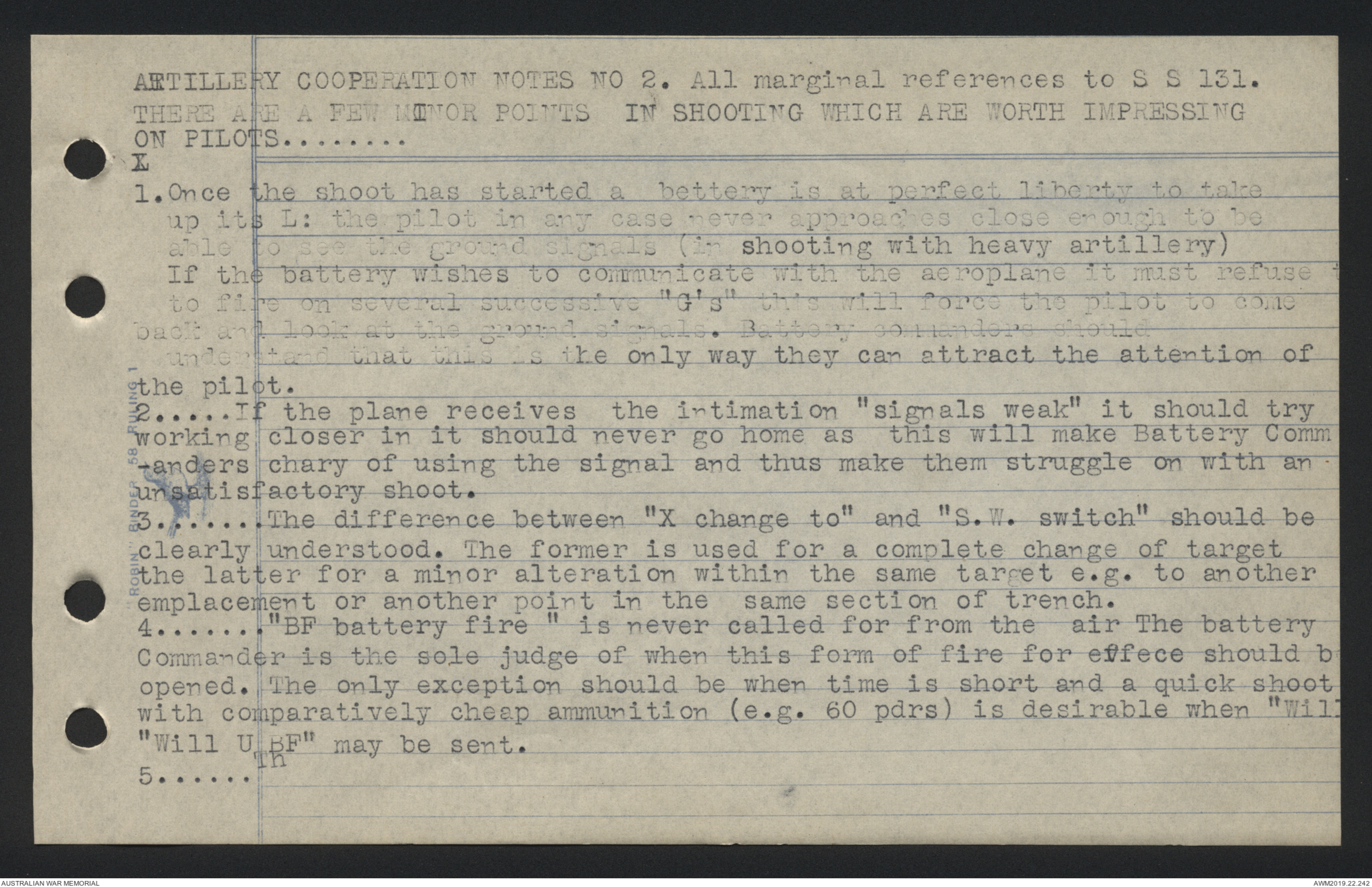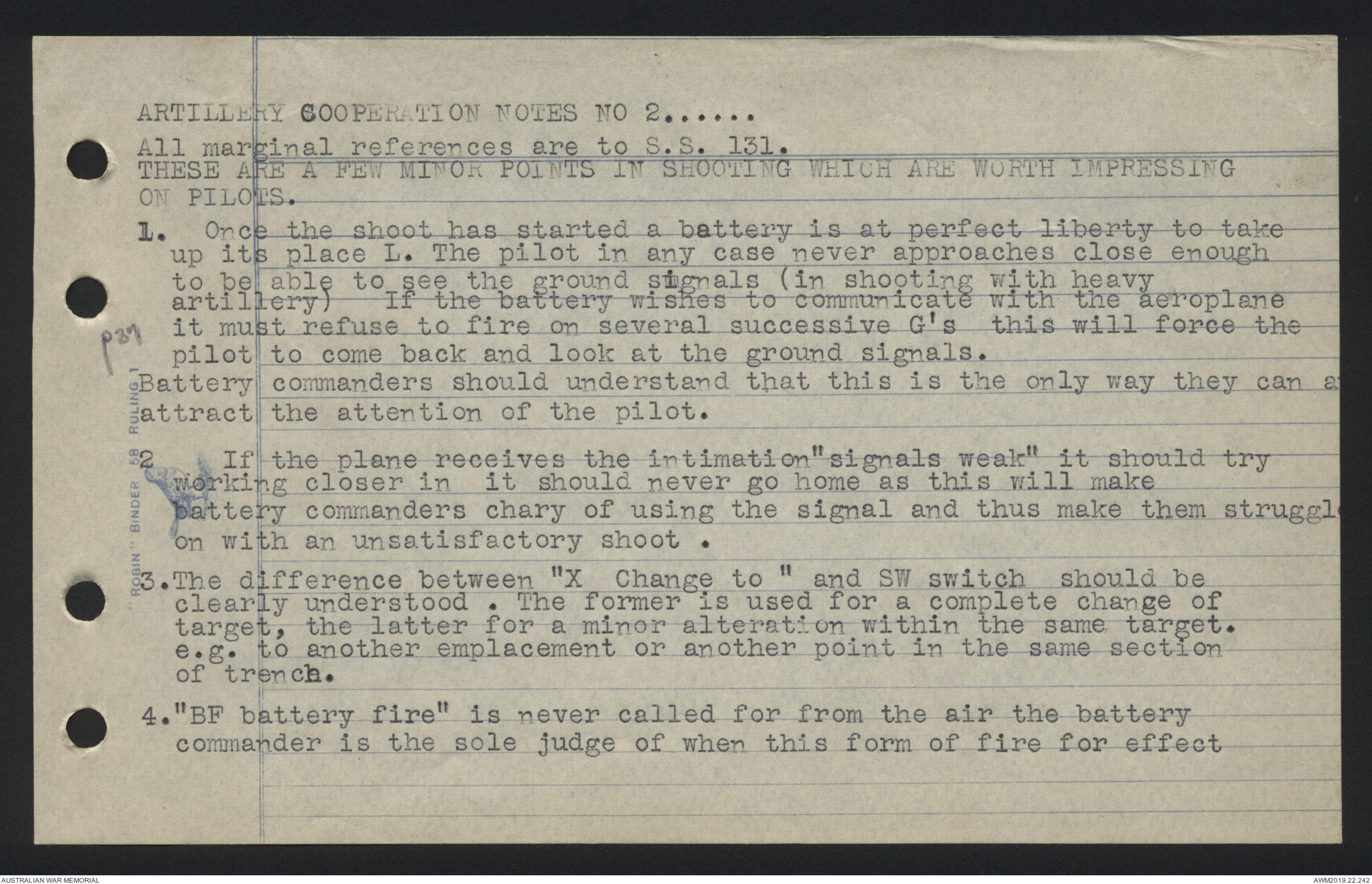ARTILLERY COOPERATION NOTES NO 2. All marginal references to S.S.131.