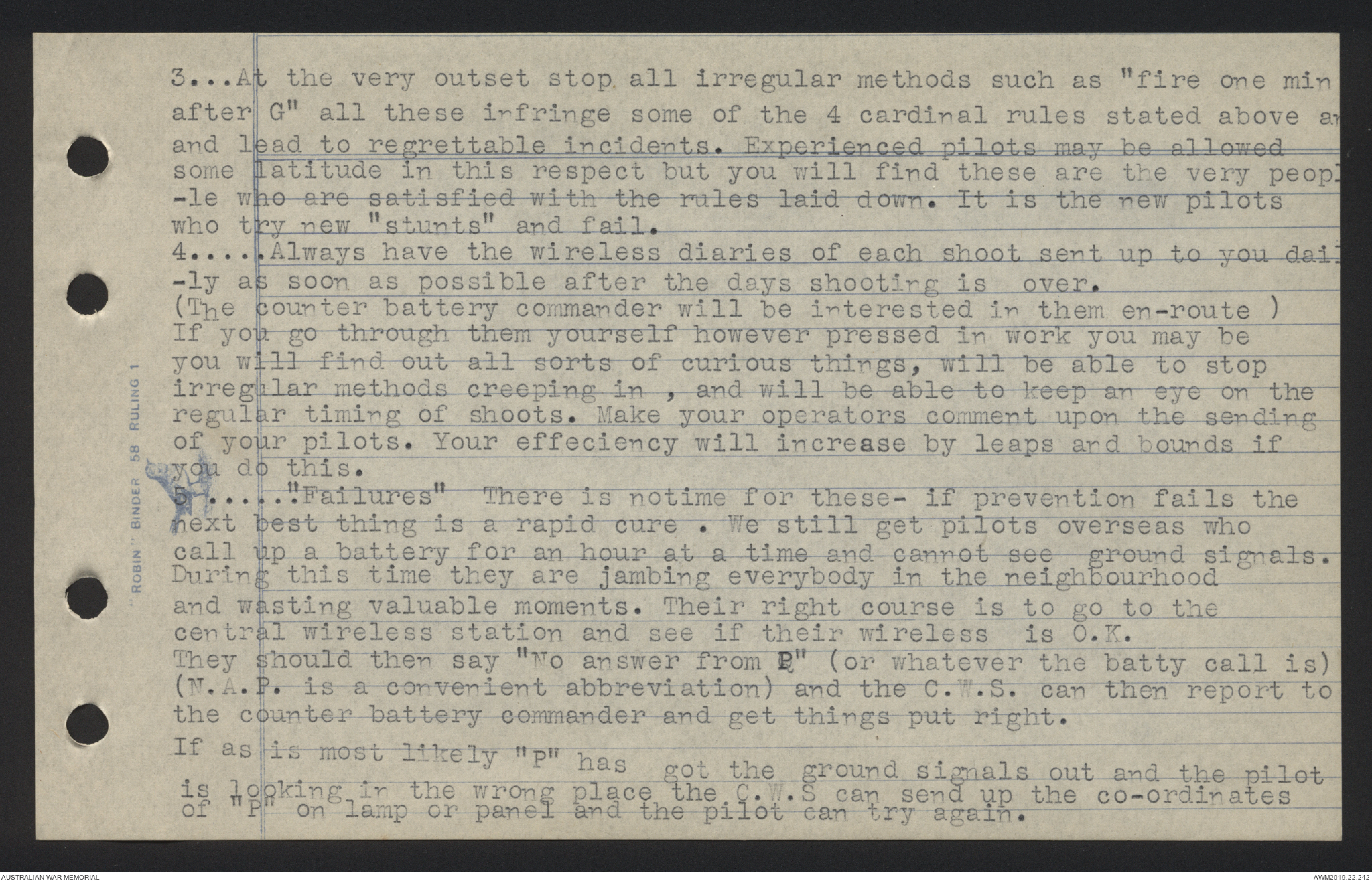 1. On a fighting front avoid wireless work with divisional artillery