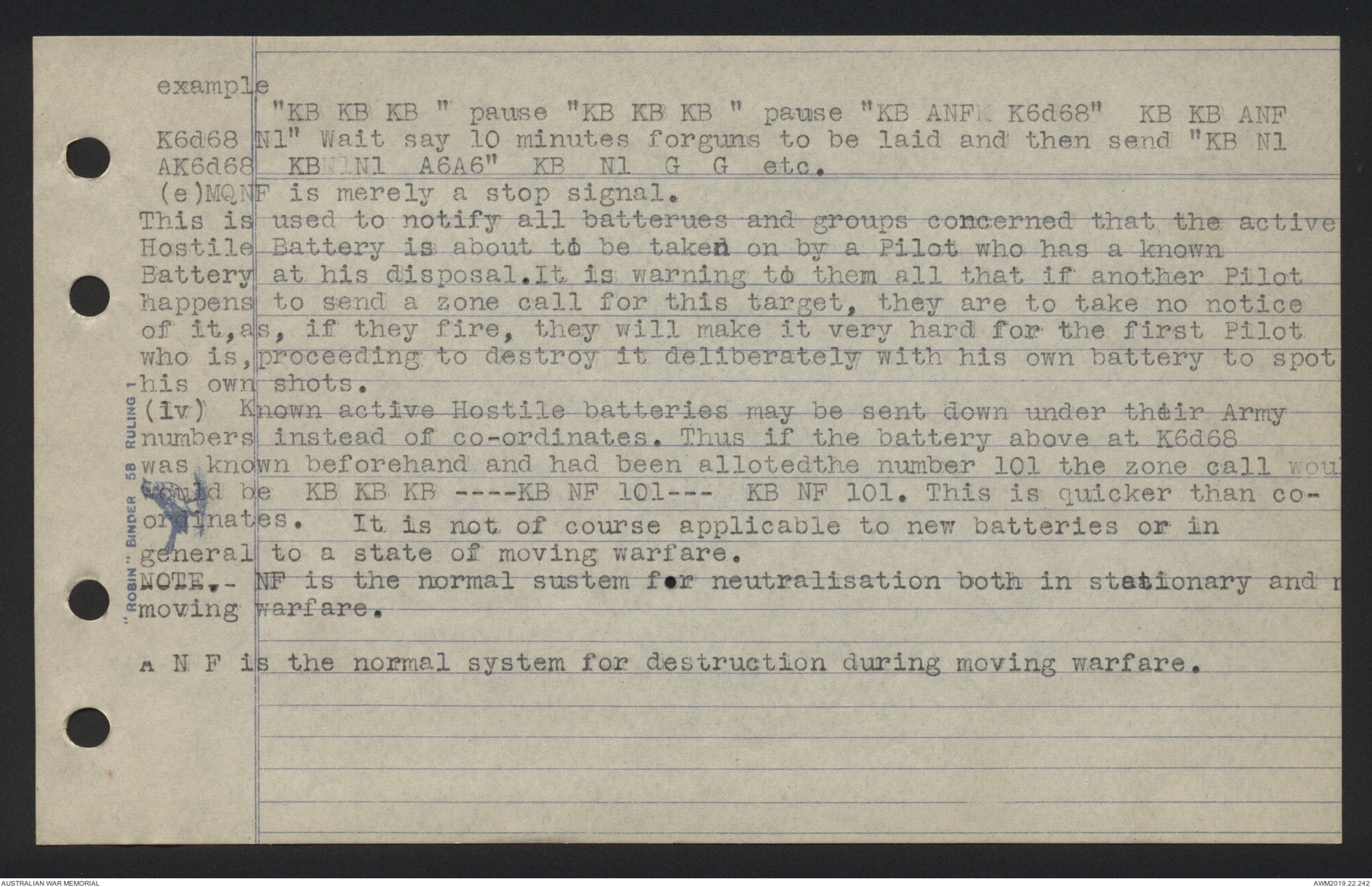 (iv) Known active Hostile batteries may be sent down under their Army