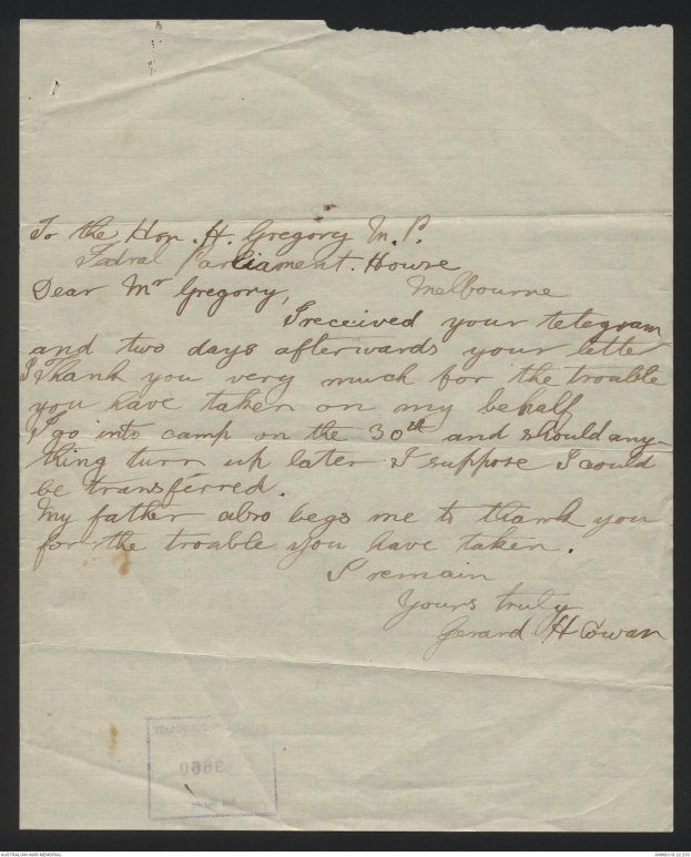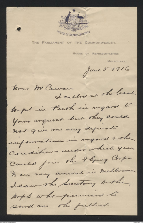 Letters of Gerard Henderson Cowan, 1916-1917 - Part 1