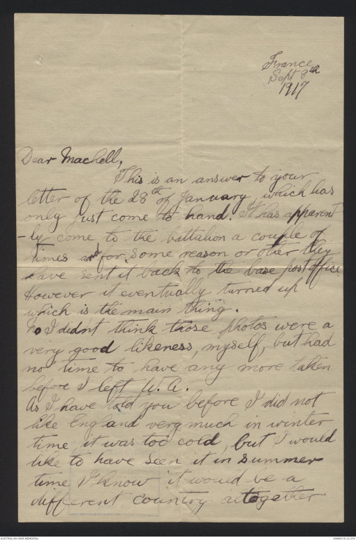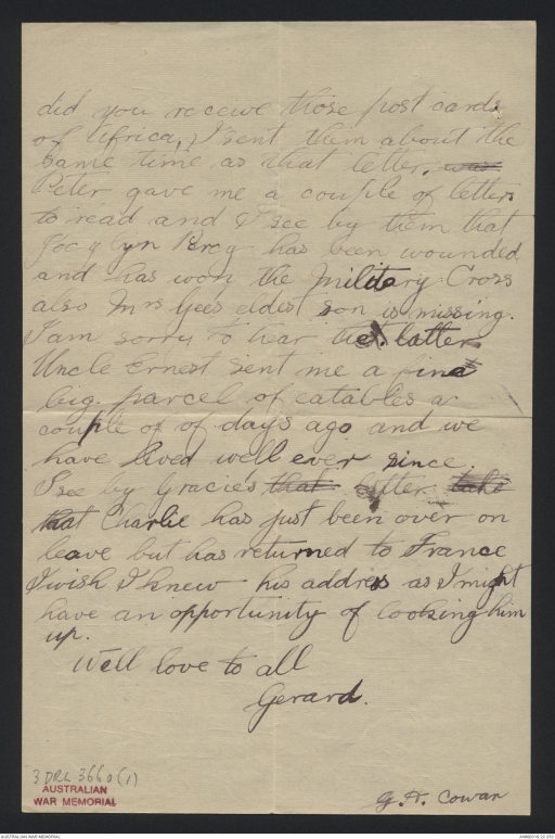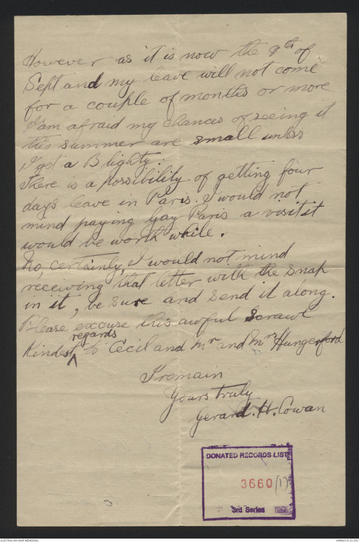 Letters of Gerard Henderson Cowan, 1916-1917 - Part 6