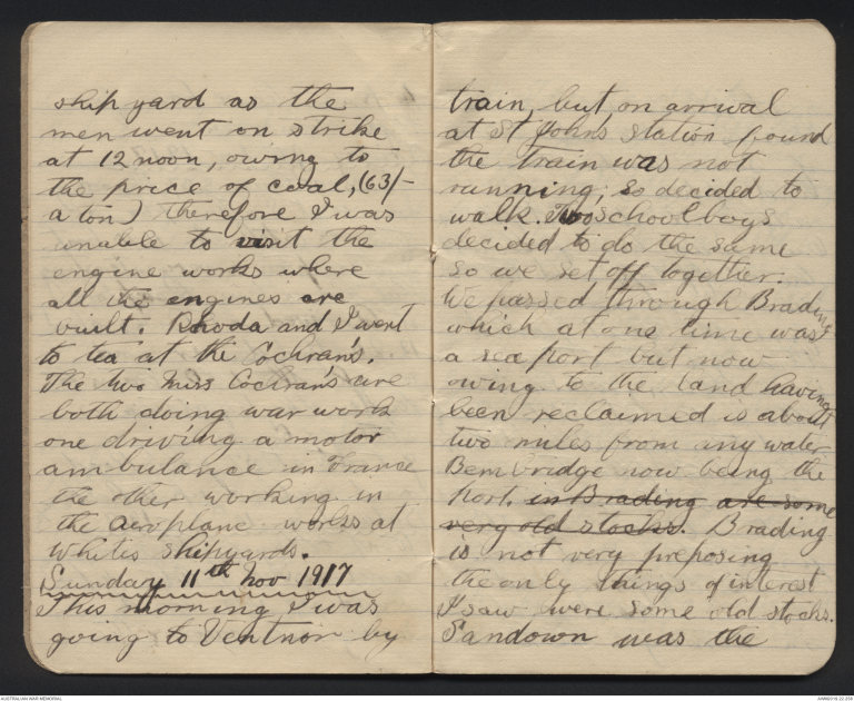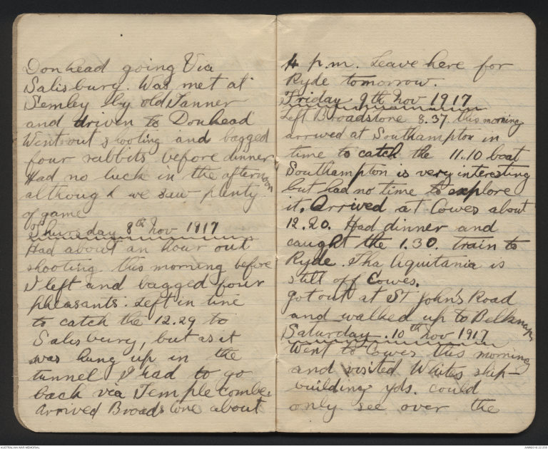 Diary of Gerard Henderson Cowan, November 1917 - January 1918 - Part 1