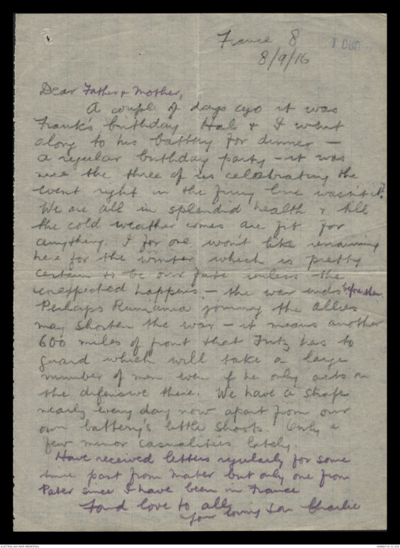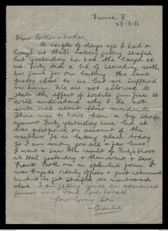 Letters from Charles Edwin Gatliff to his family, March - December 1916 - Part 2