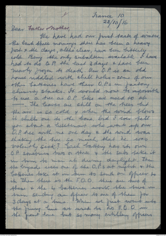firing xxx line as winter O.P.'s. Fritz puts a few shells
