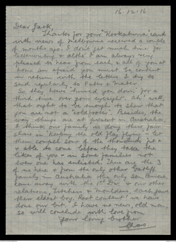 Letters from Charles Edwin Gatliff to his family, March - December 1916 - Part 6