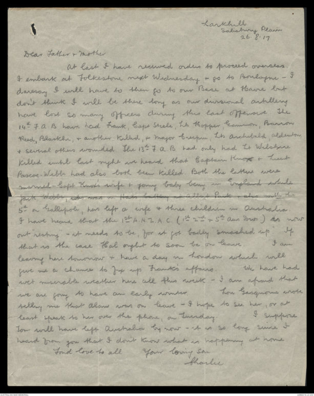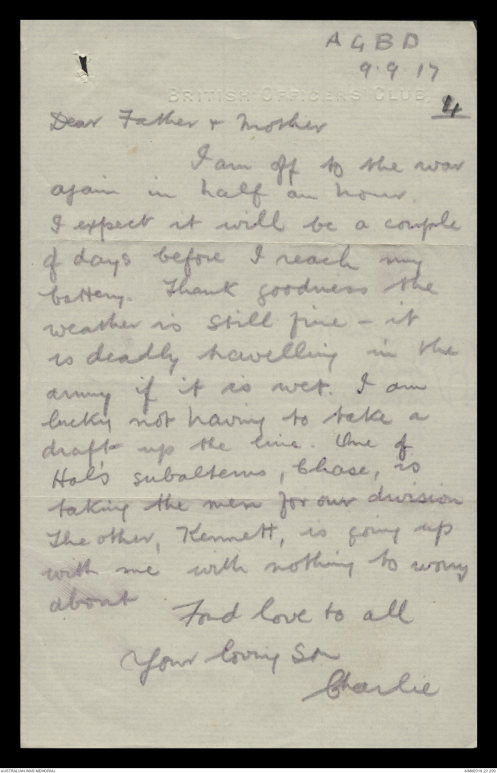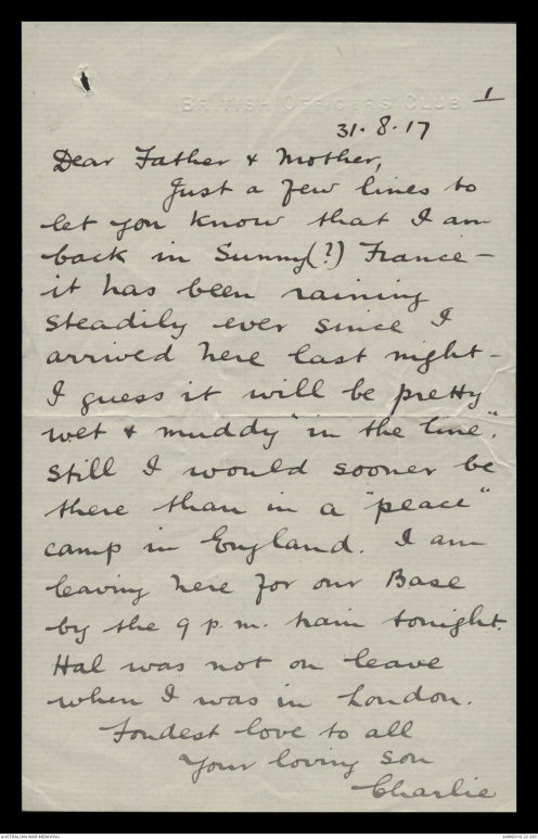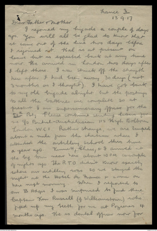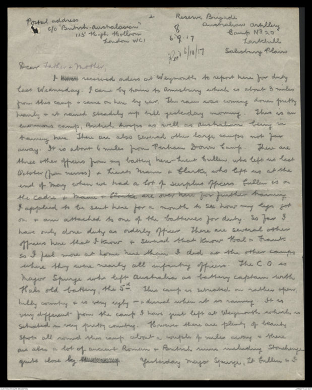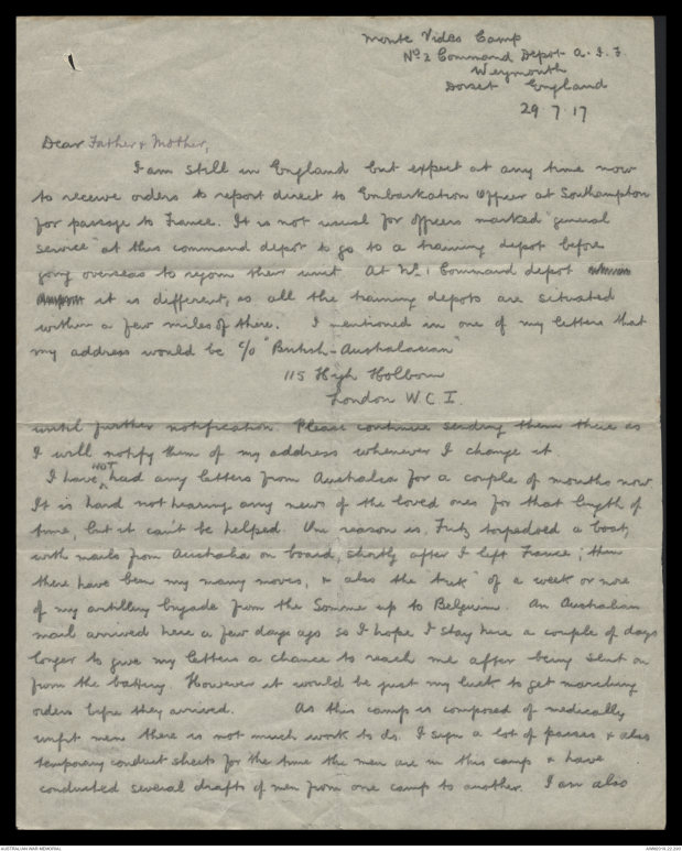 present I am supernumerary officer for the 50th Bty Please continue sending letter for me c/o British-Australian High Holborn